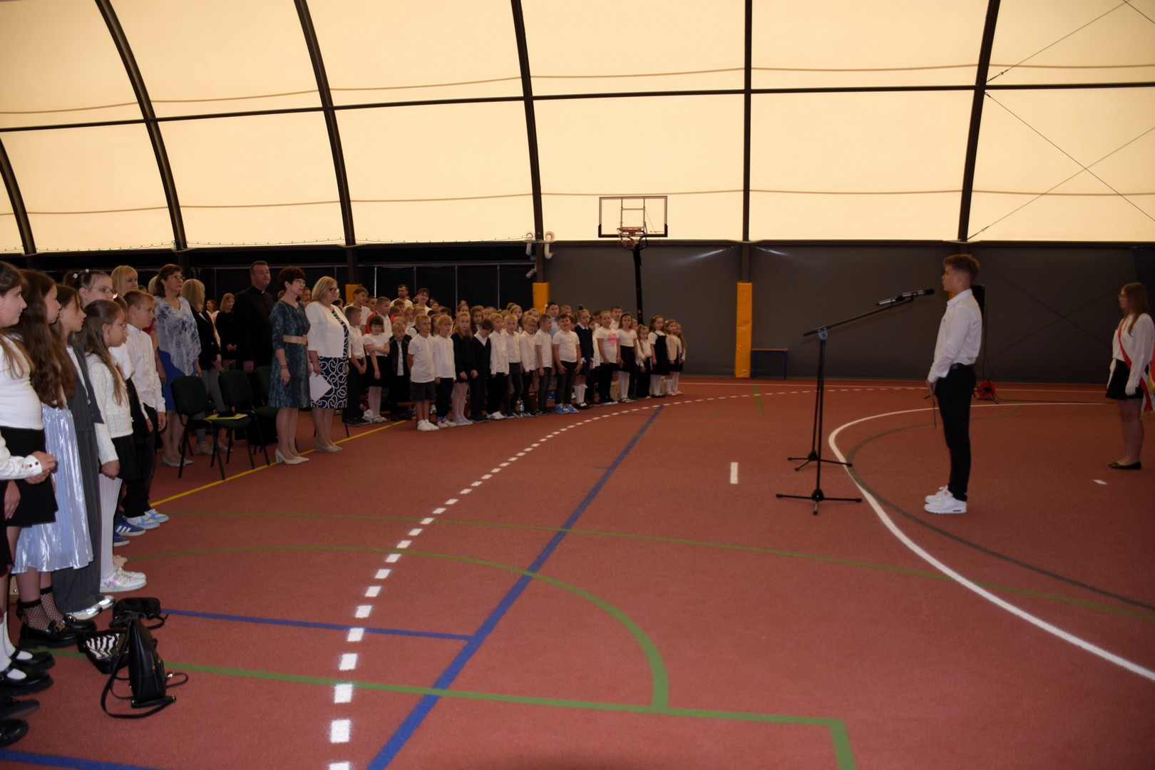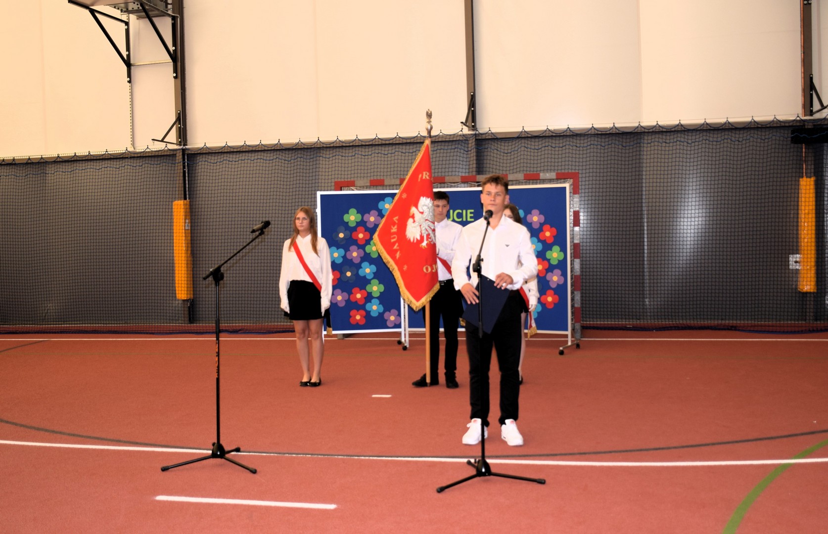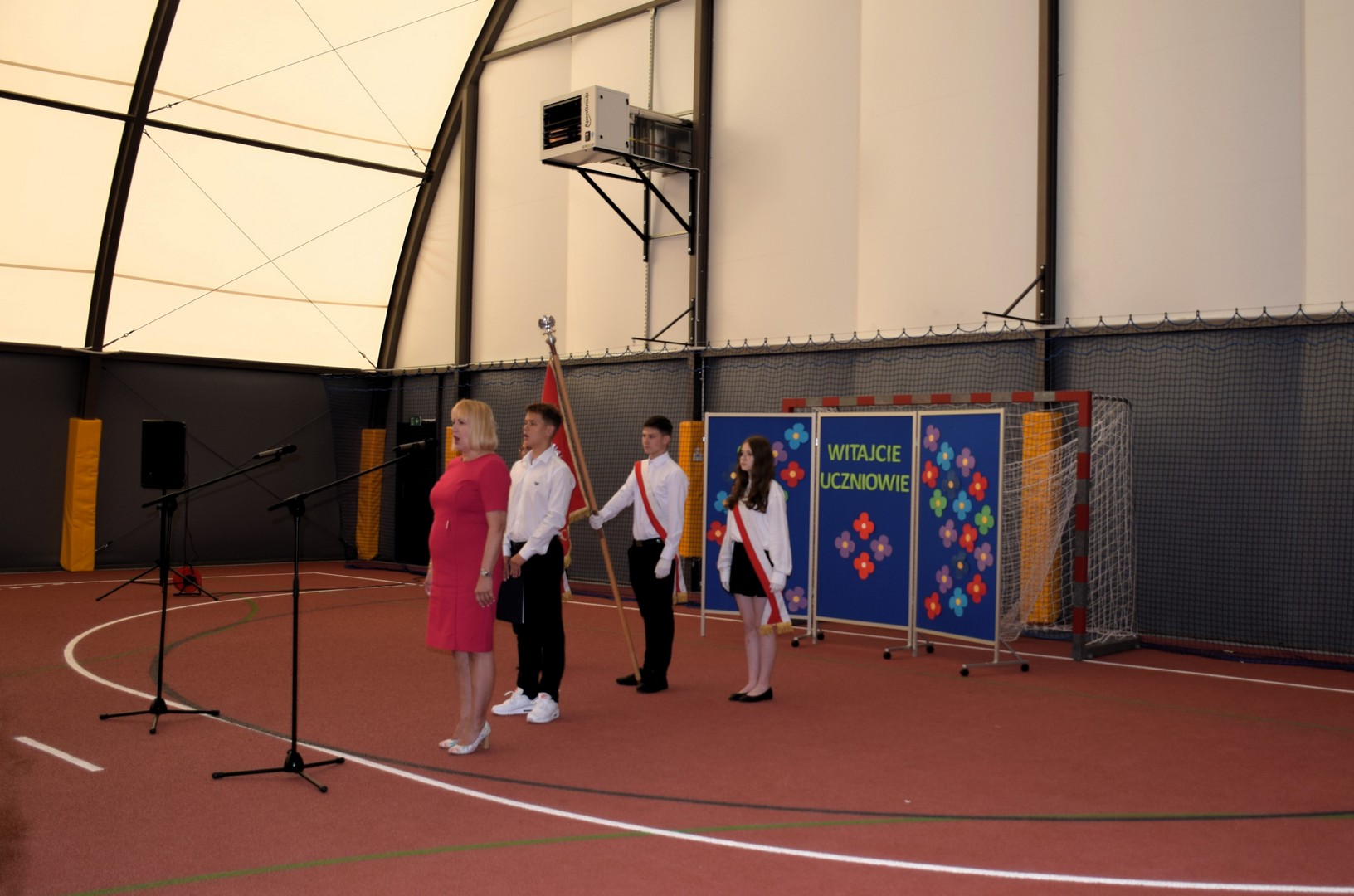 Uroczystość rozpoczęła się od wprowadzenia pocztu sztandarowego i odśpiewania hymnu narodowego. Następnie głos zabrała Pani Dyrektor, która serdecznie powitała całą społeczność szkolną, a szczególnie uczniów klas pierwszych rozpoczynających swoją szkolną przygodę. W swoim przemówieniu podkreśliła znaczenie współpracy, wzajemnego szacunku oraz wytrwałości w zdobywaniu wiedzy.