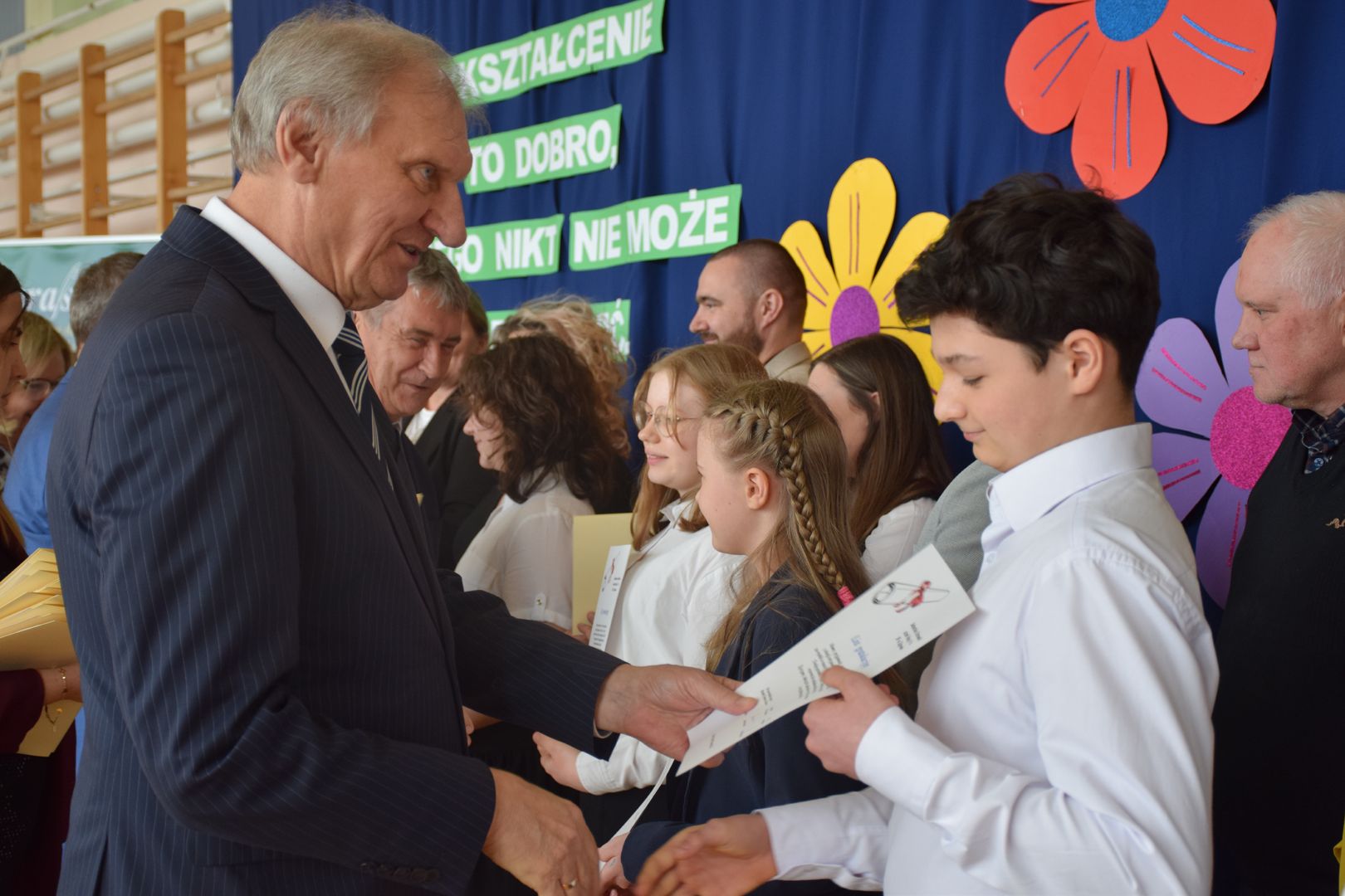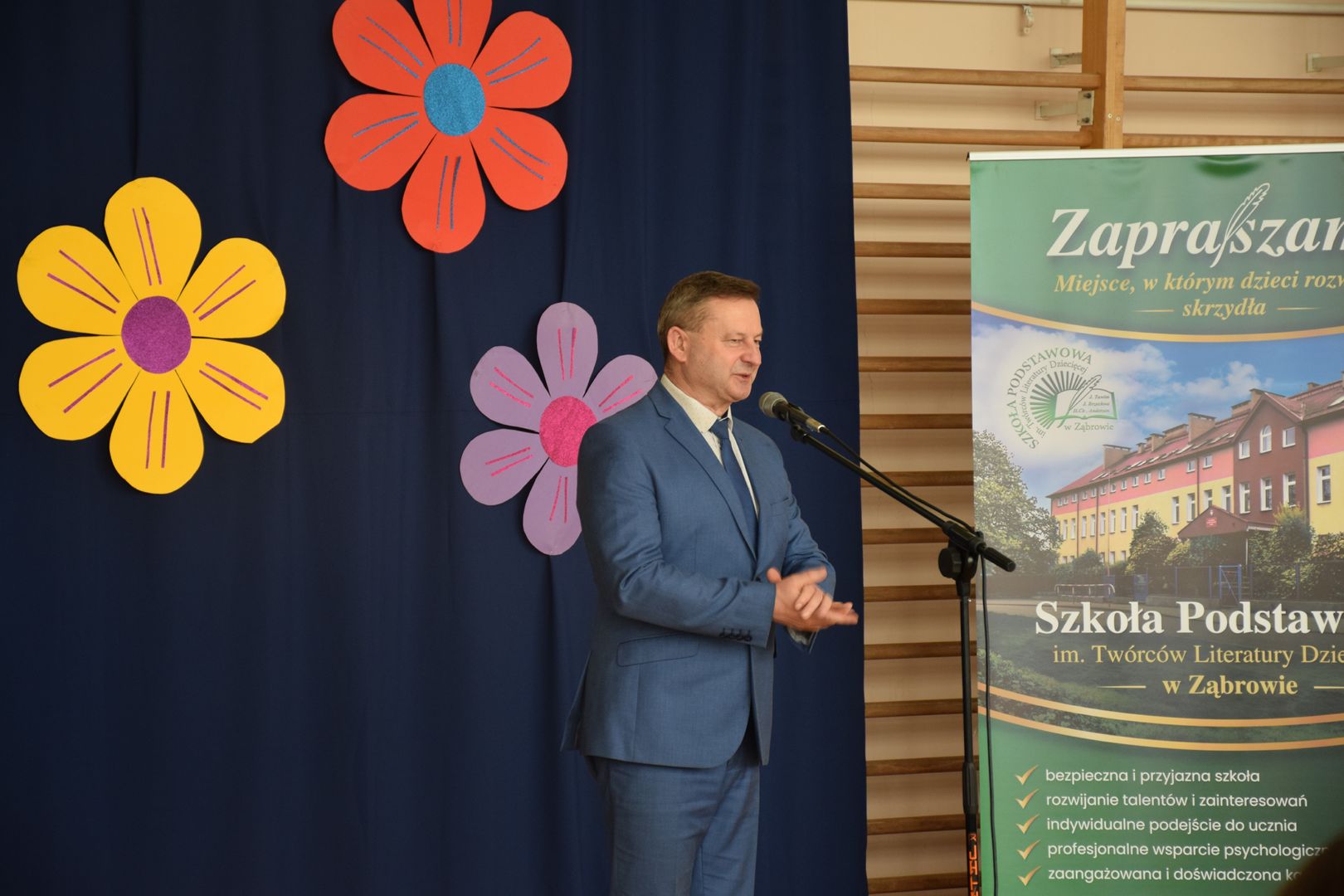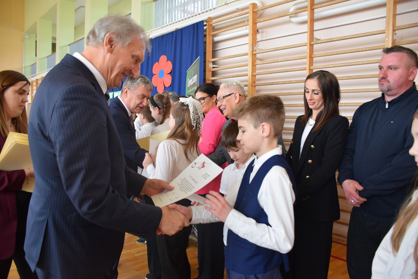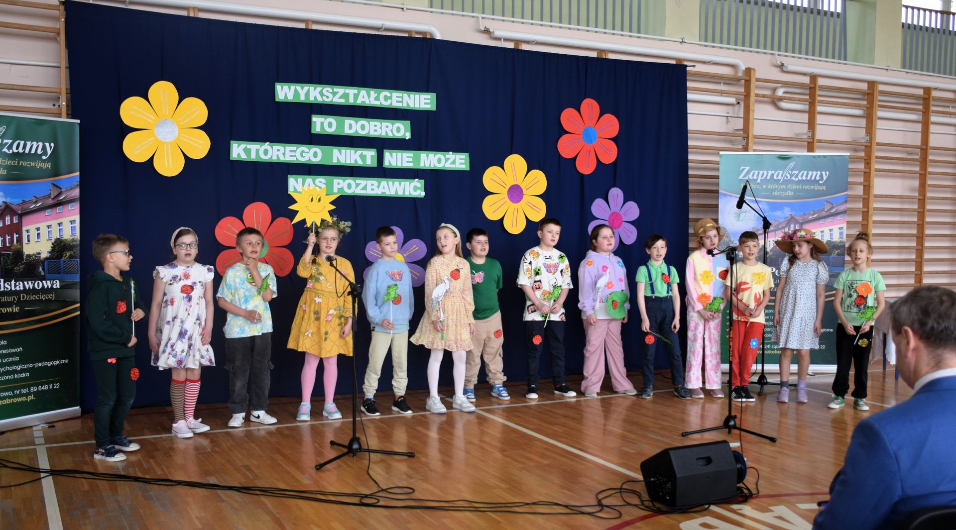 Uroczystość rozpoczęła się od występu dzieci z klasy drugiej, które zaprezentowały radosną piosenkę wiosenną, wprowadzając wszystkich w pogodny nastrój.