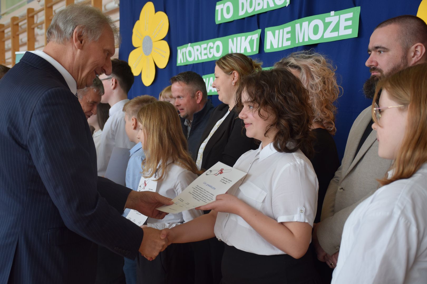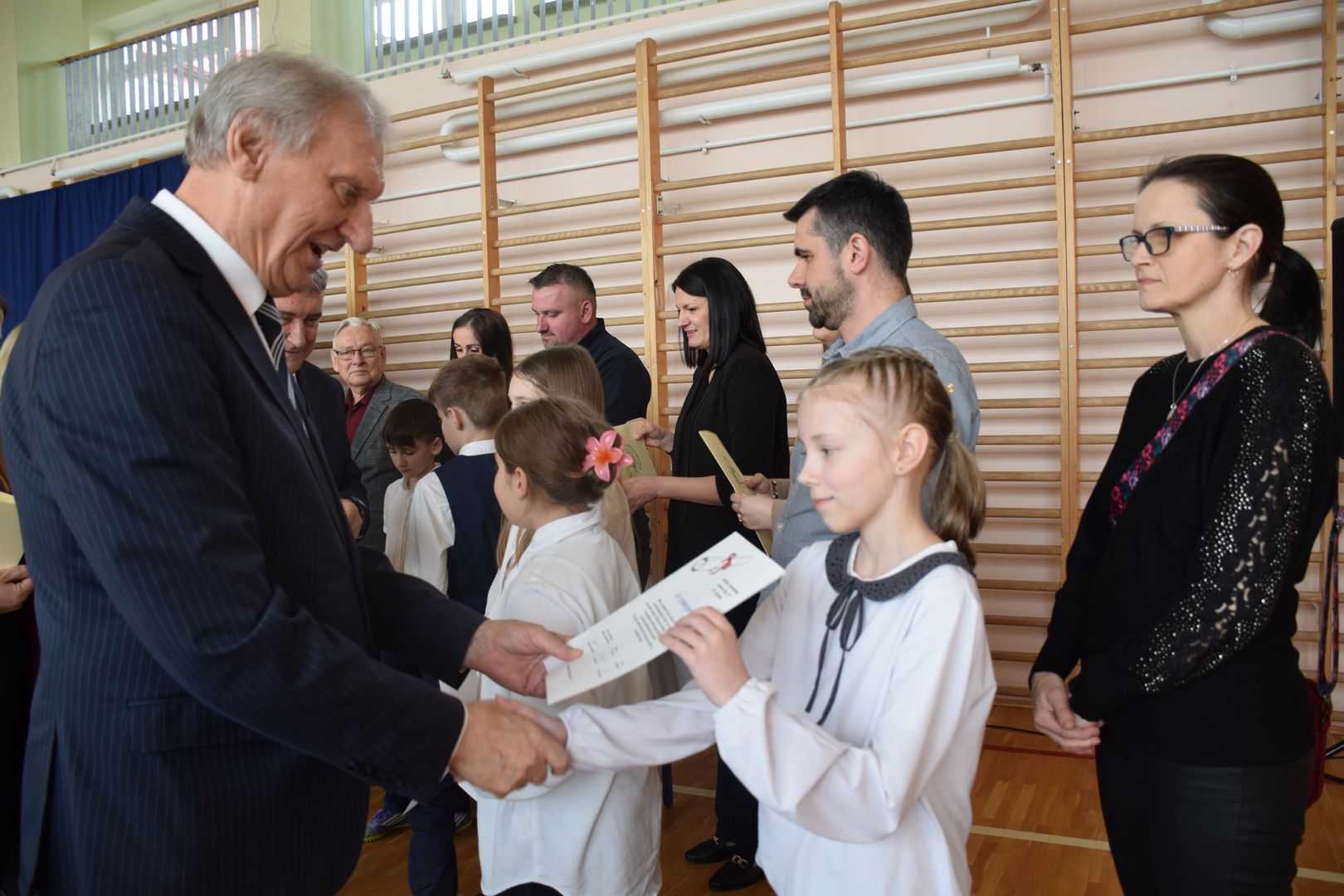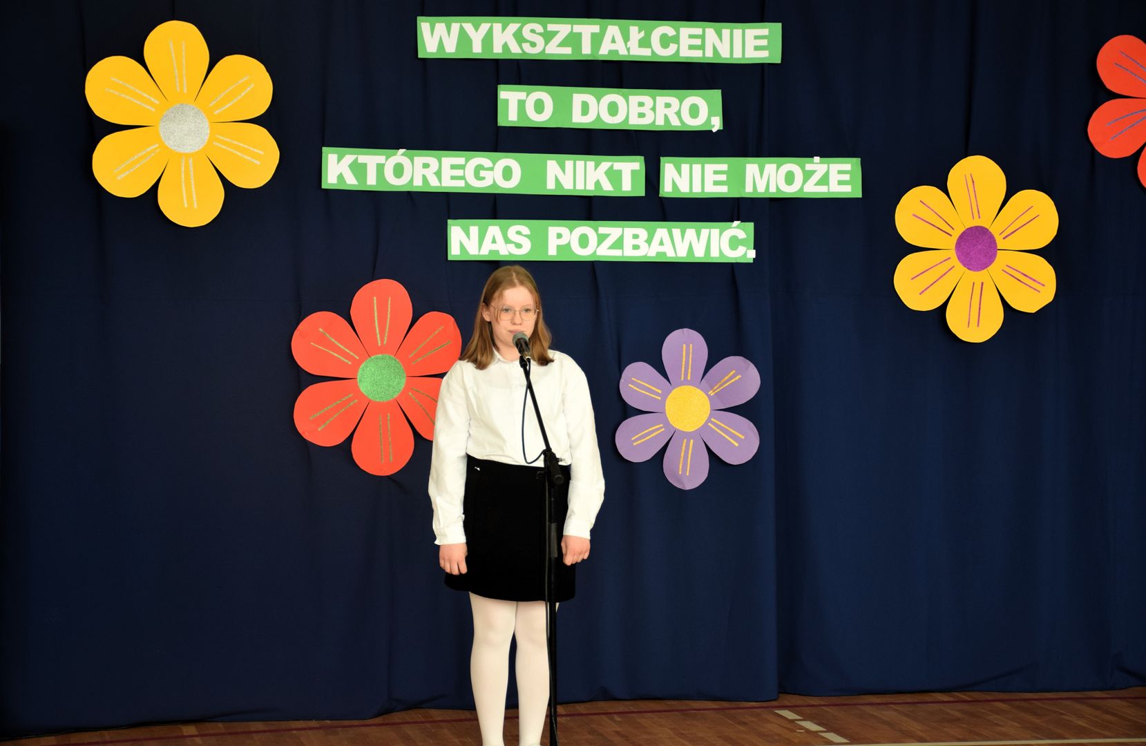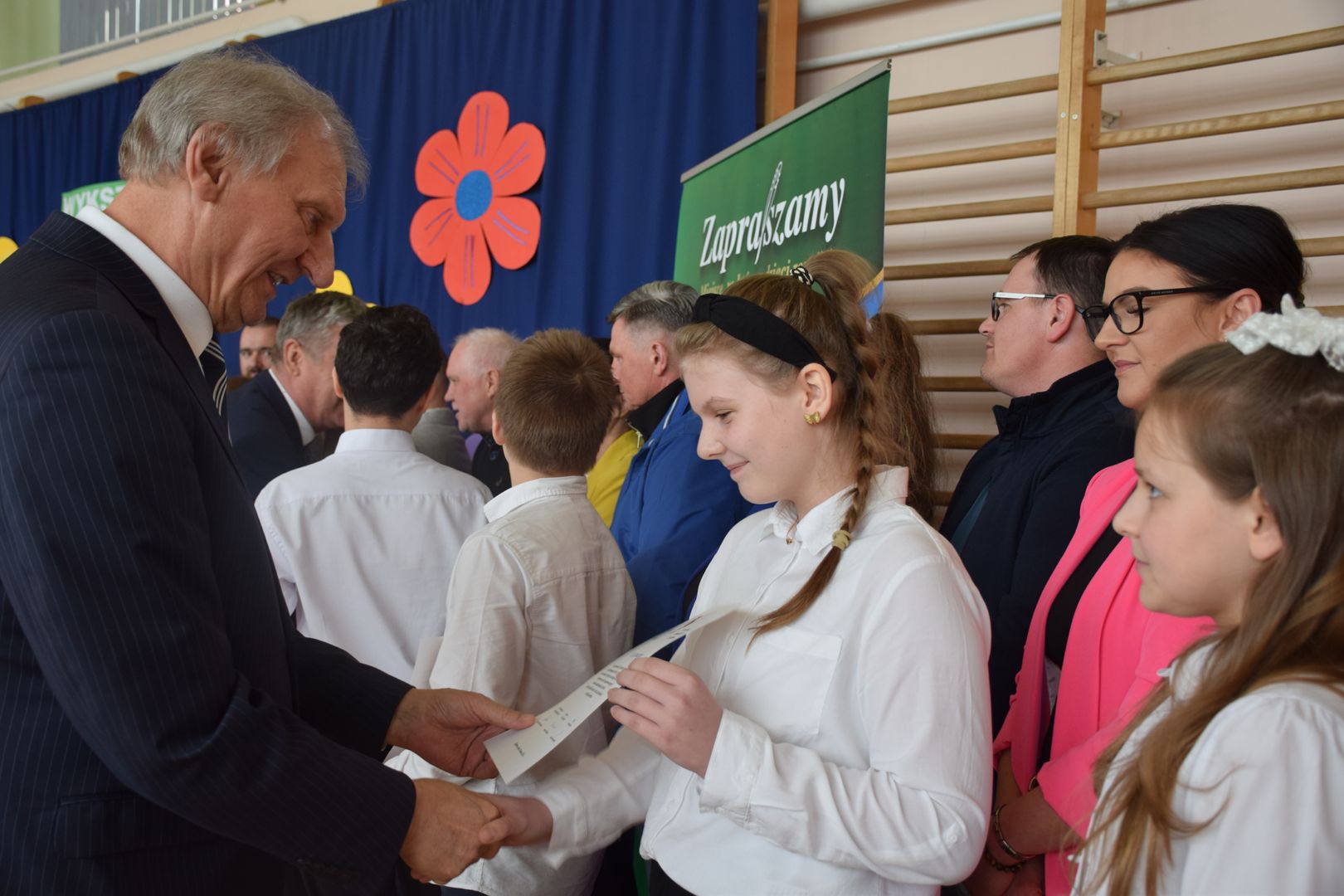 Uroczystość rozpoczęła się od występu dzieci z klasy drugiej, które zaprezentowały radosną piosenkę wiosenną, wprowadzając wszystkich w pogodny nastrój.