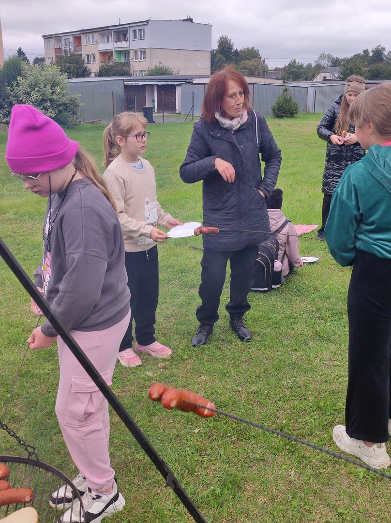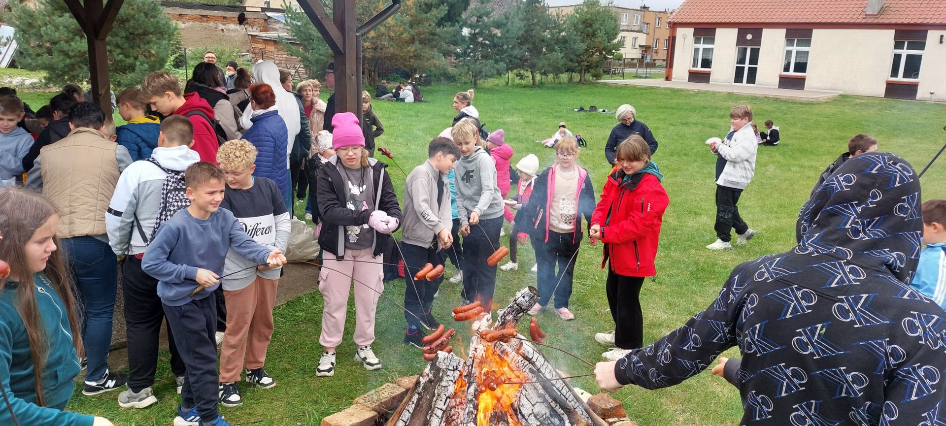 Po dotarciu do placu przy świetlicy w Szymbarku czekało ognisko z pieczeniem kiełbasek, które odbyło się dzięki pomocy i uprzejmości Pani Sołtys Bożenie Majewskiej oraz Radzie Rodziców szkoły w Ząbrowie. Uczniowie mieli okazję podziwiać jesienną przyrodę i odpocząć od szkolnych obowiązków w towarzystwie koleżanek, kolegów i nauczycieli. Najmłodszym uczniom z klas 1-3 towarzyszyli rodzice.