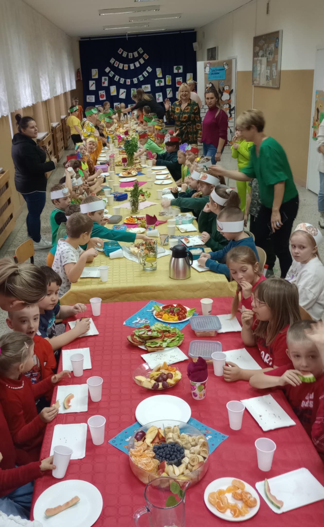 Tego dnia dzieci samodzielnie wykonały kanapki z bogactwa warzyw, zdrowych wędlin, serów i pełnoziarnistego pieczywa, które później wspólnie spożywały przy jednym stole. Wzmocniło to ich energię do nauki i zabawy, rozbudziło kreatywność i umiejętności pracy w grupie.