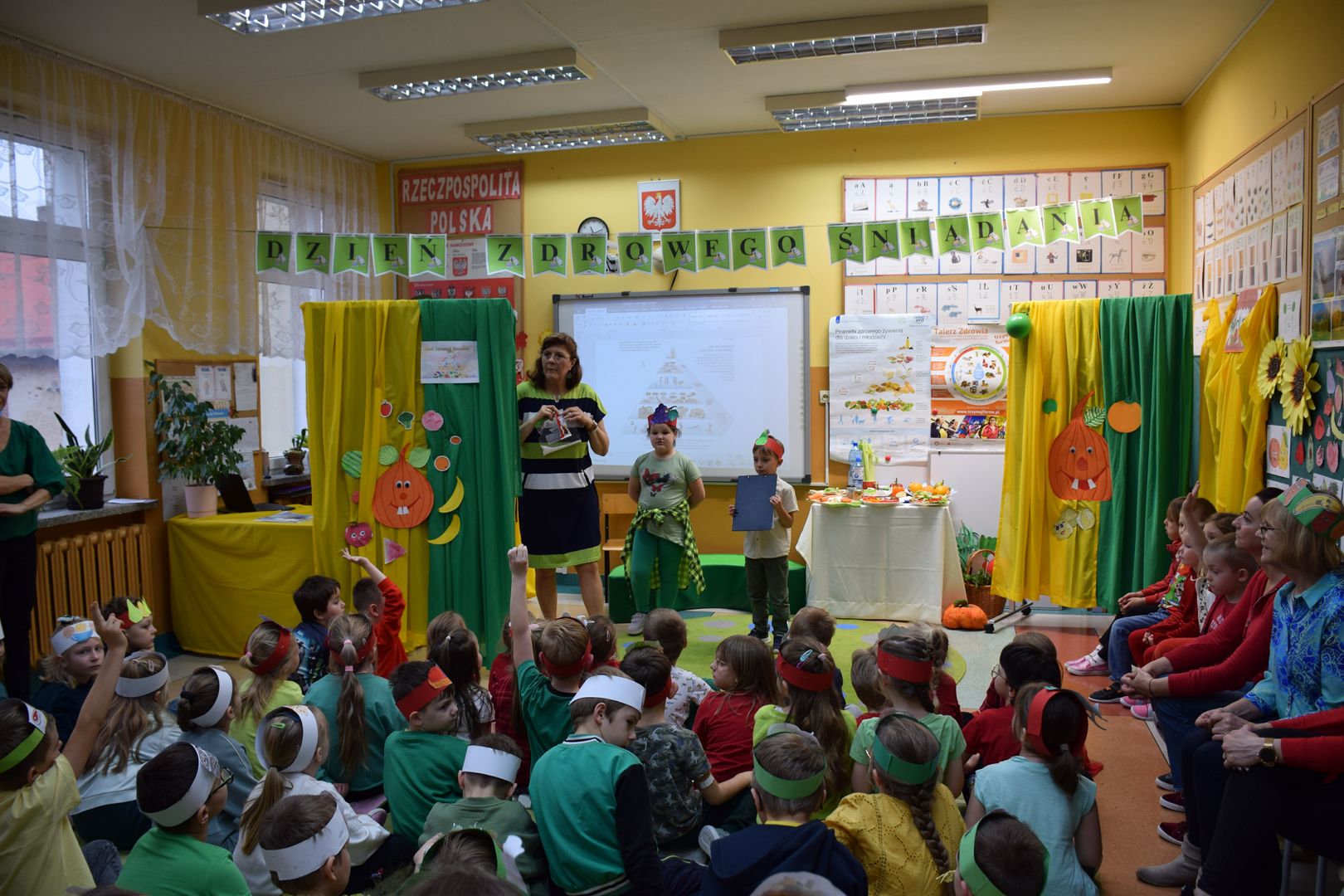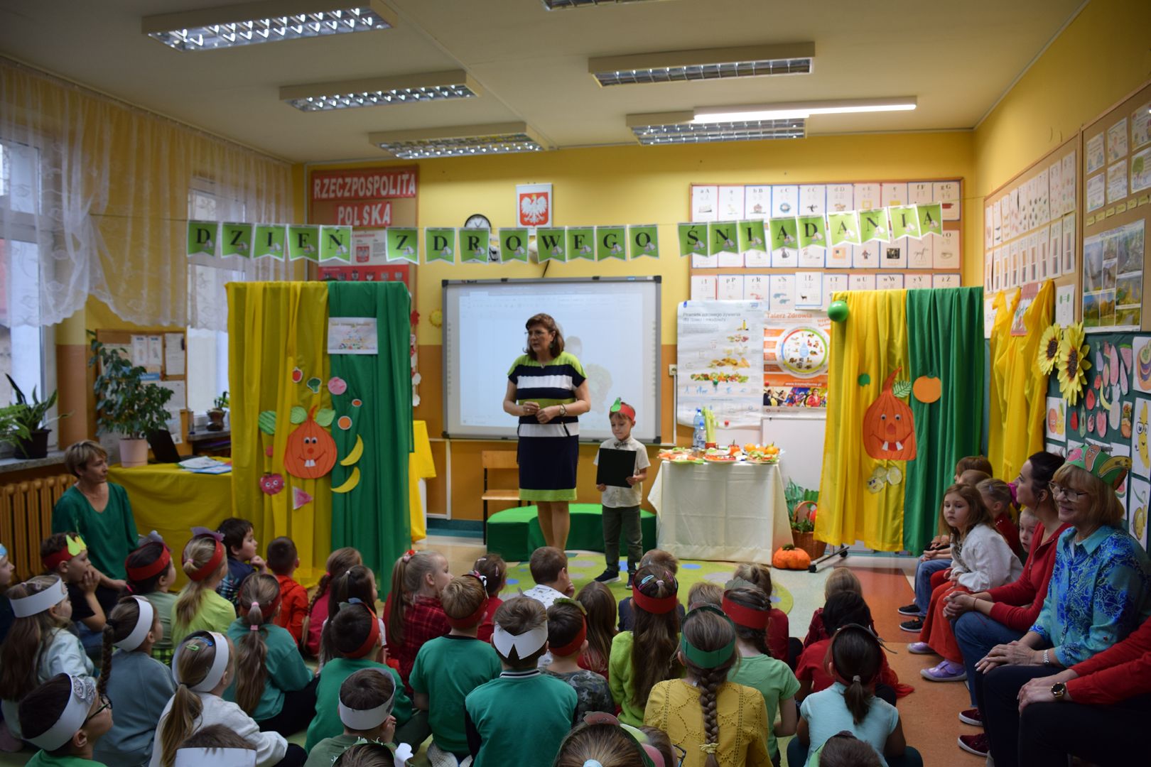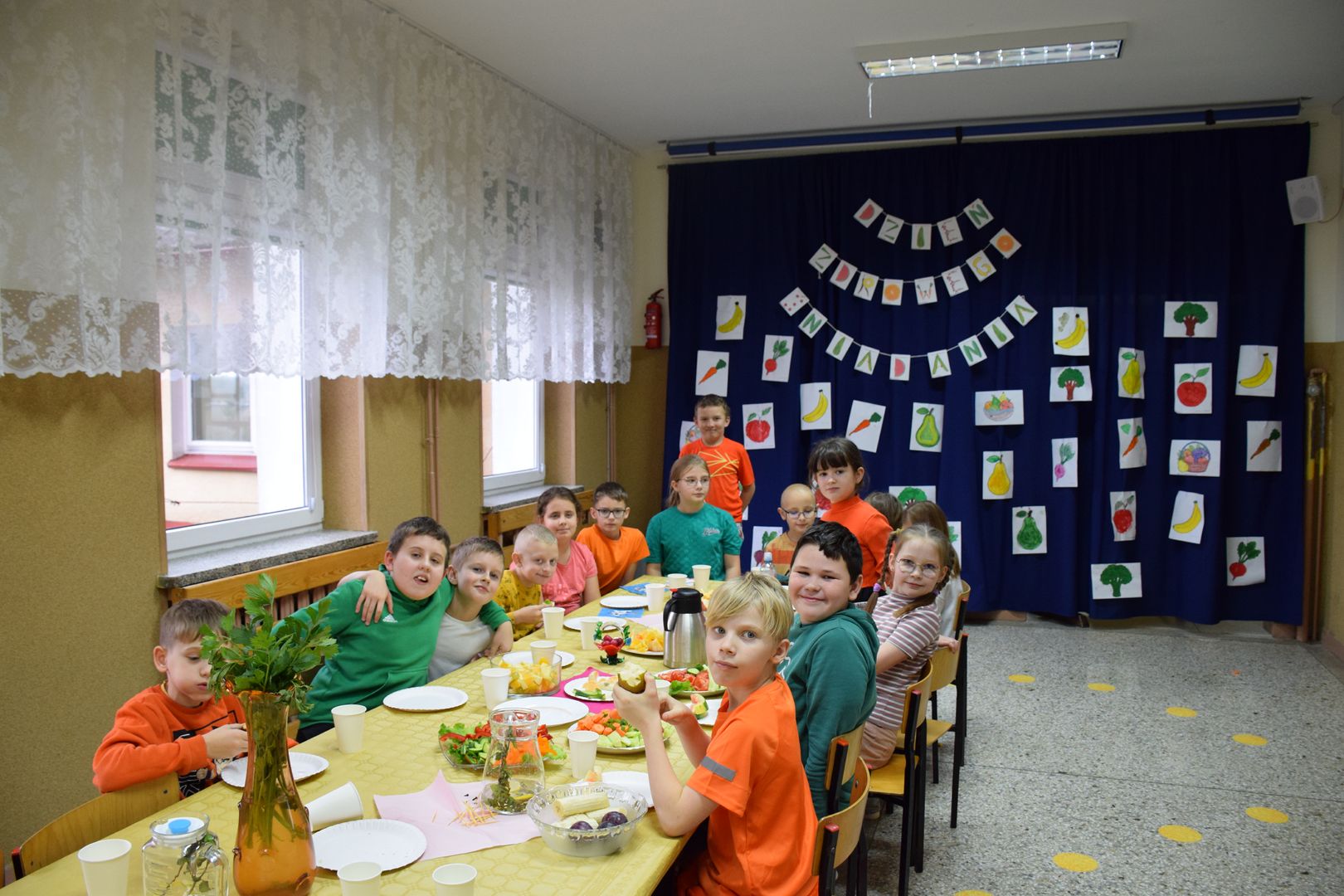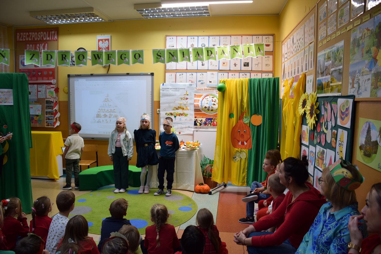 Uczniowie klasy 1a i 1b przygotowali prezentację na temat zasad zdrowych nawyków żywieniowych. Przekazali również informacje na temat higieny przygotowywania i spożywania posiłków oraz kulturalnego zachowania przy stole.