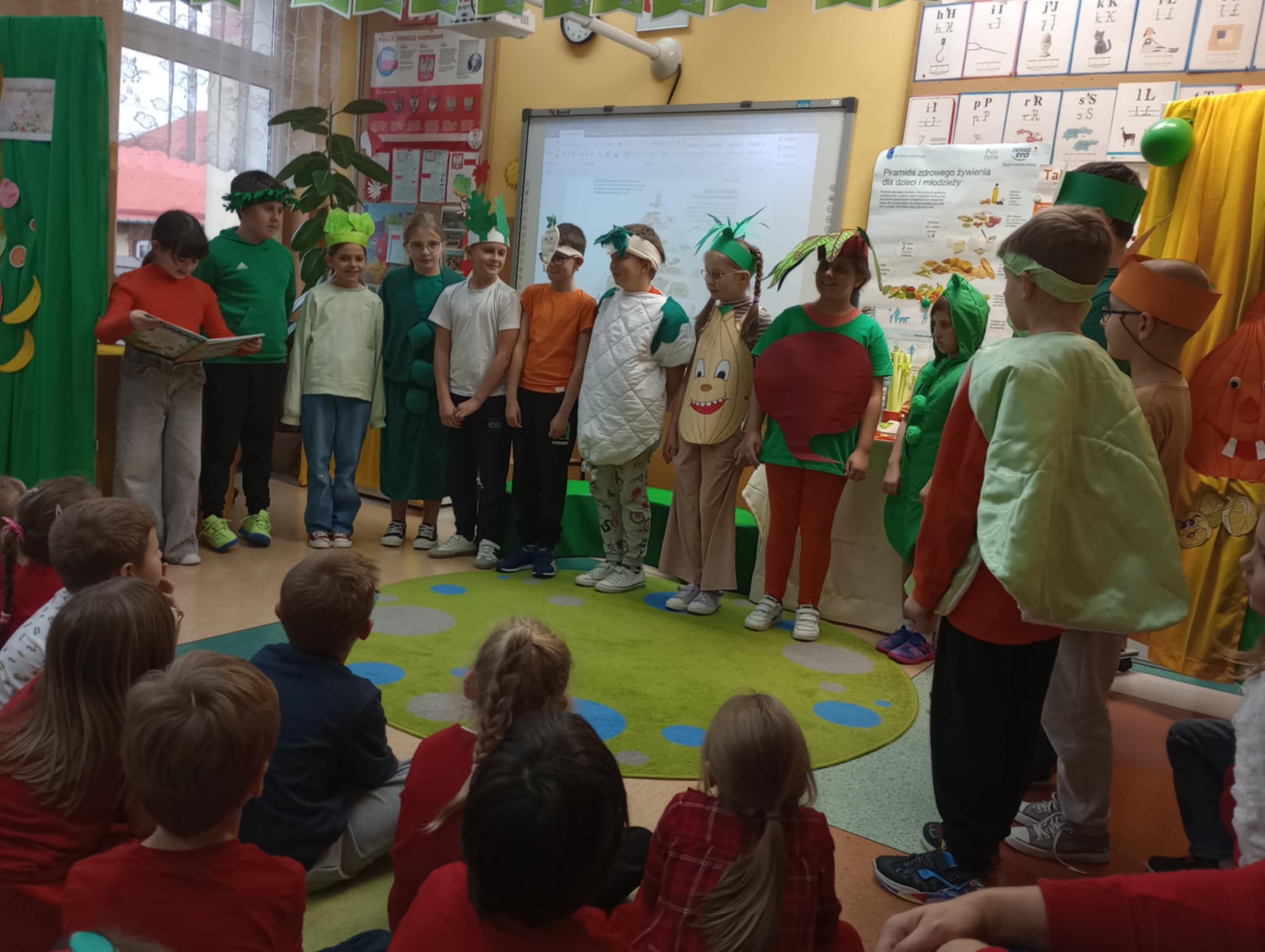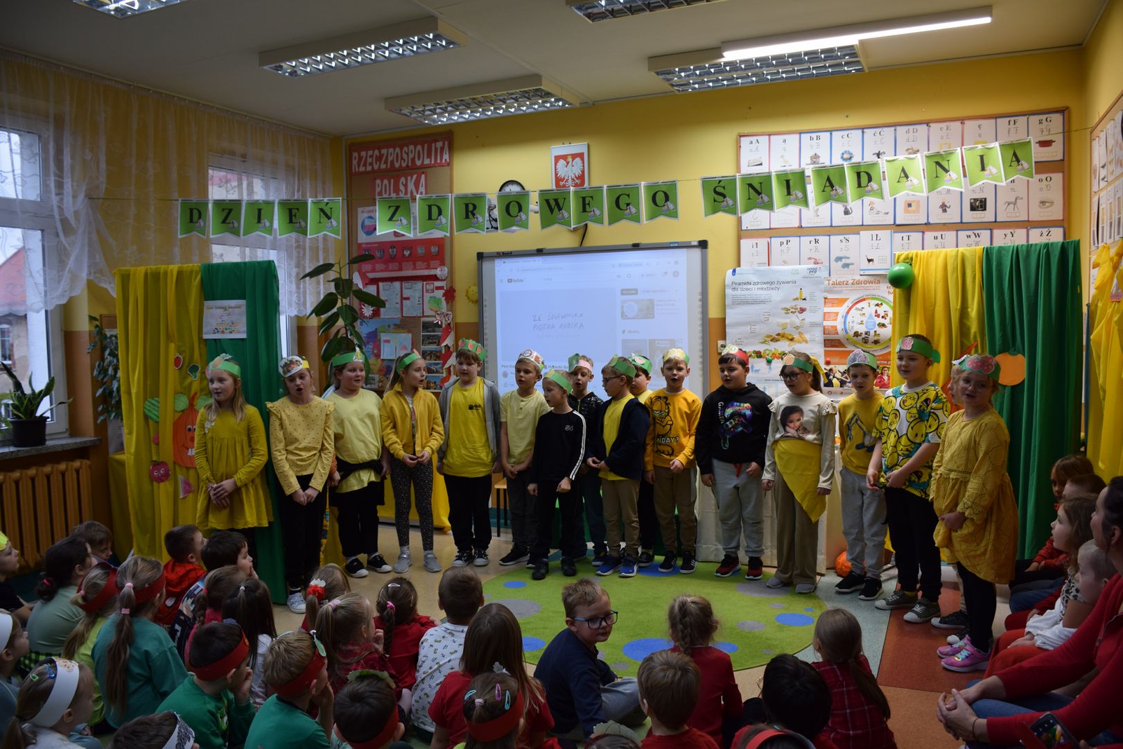 „ O zdrowiu” zaśpiewanej przez dzieci z klasy drugiej oraz inscenizacja wiersza J. Brzechwy