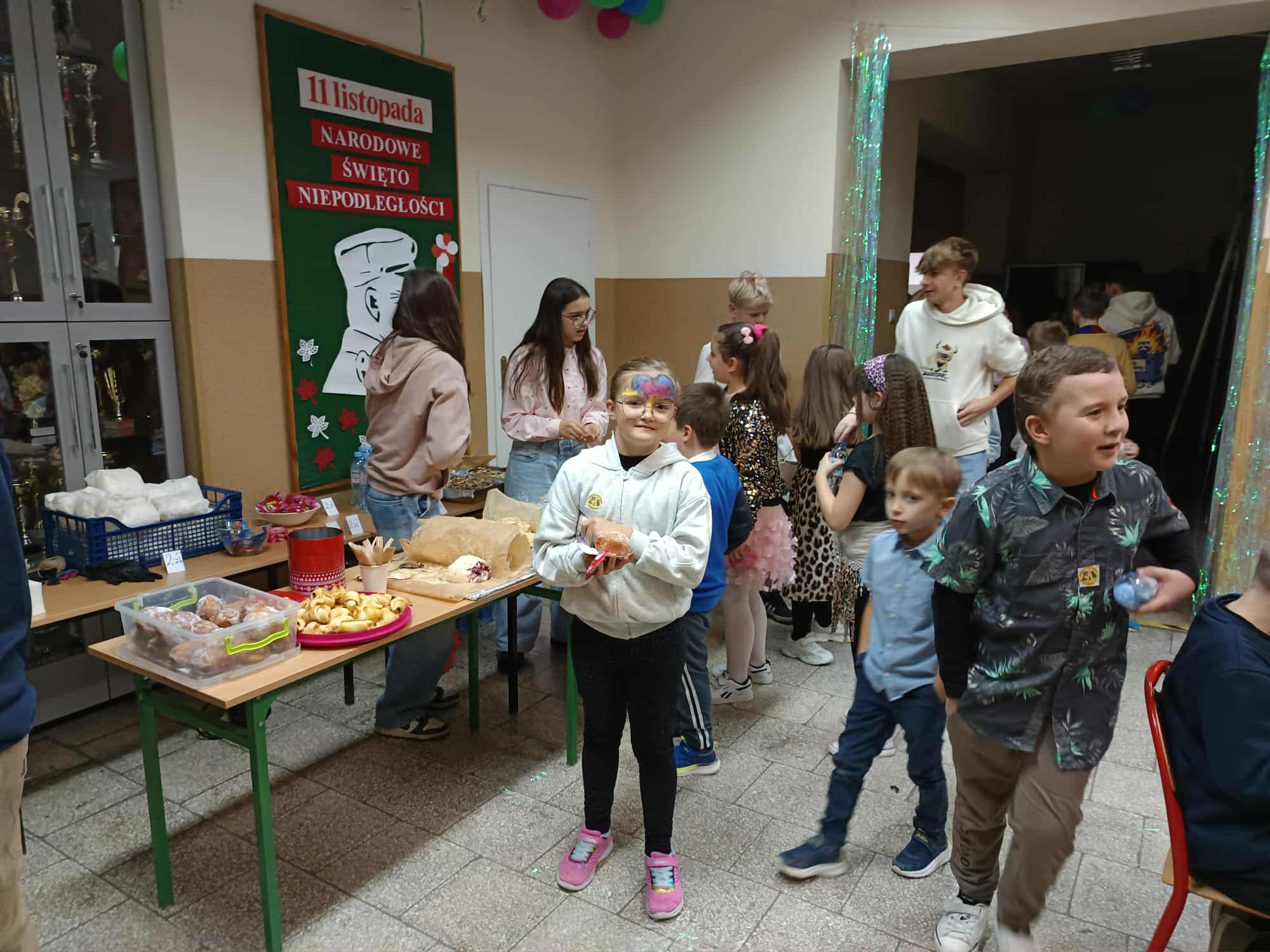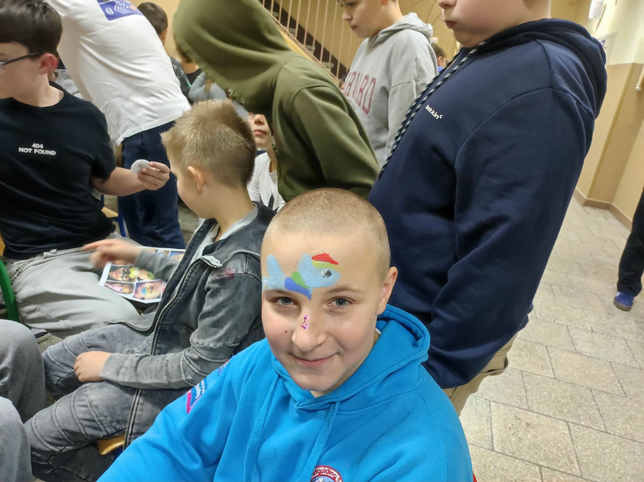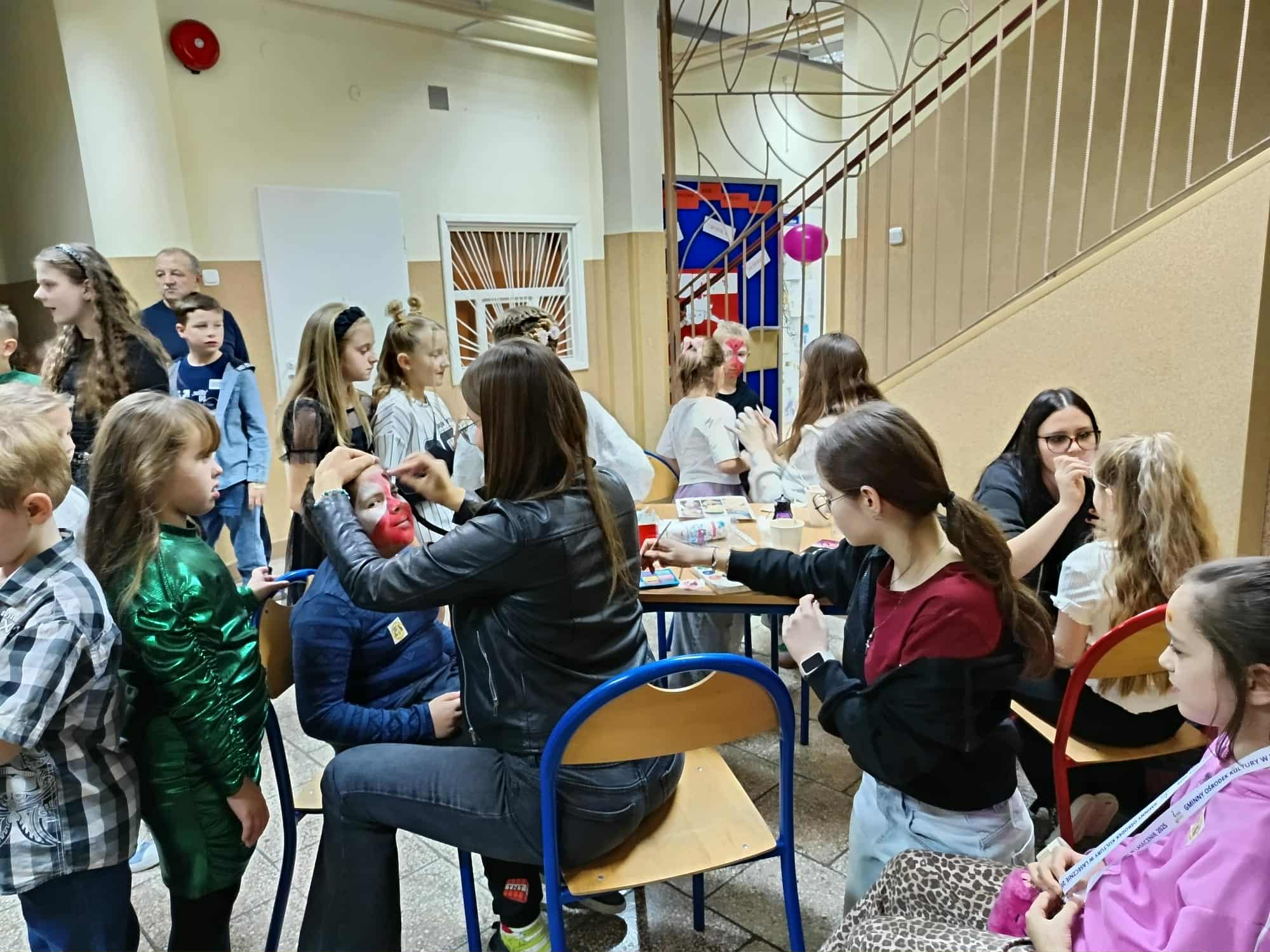 Ogromnym zainteresowaniem cieszyło się również malowanie twarzy, które szczególnie przypadło do gustu młodszym uczniom. Kreatywne wzory, brokat i kolorowe farby dodawały całemu wydarzeniu jeszcze więcej magii.