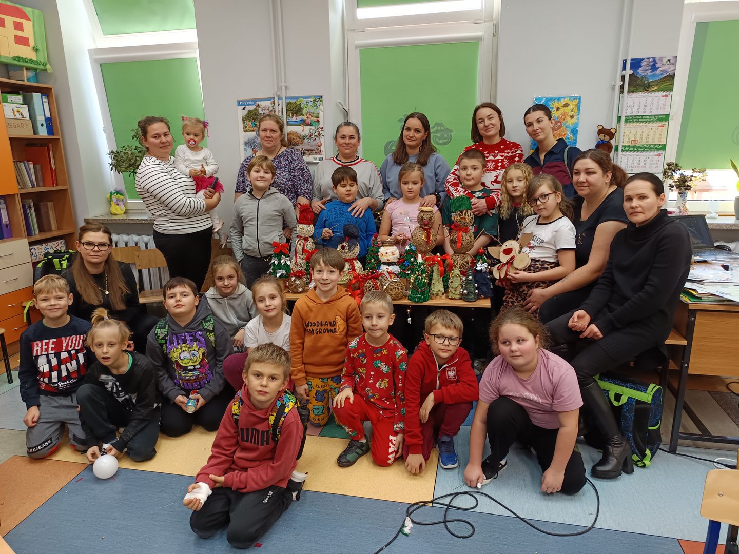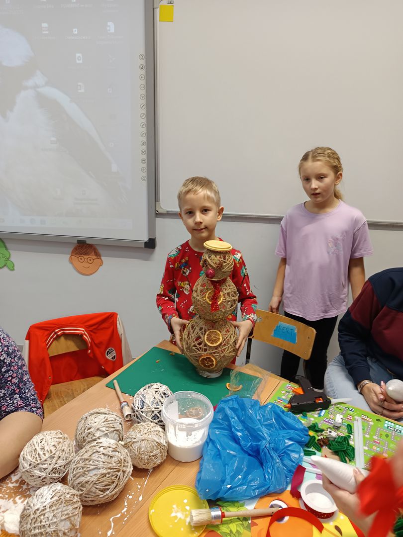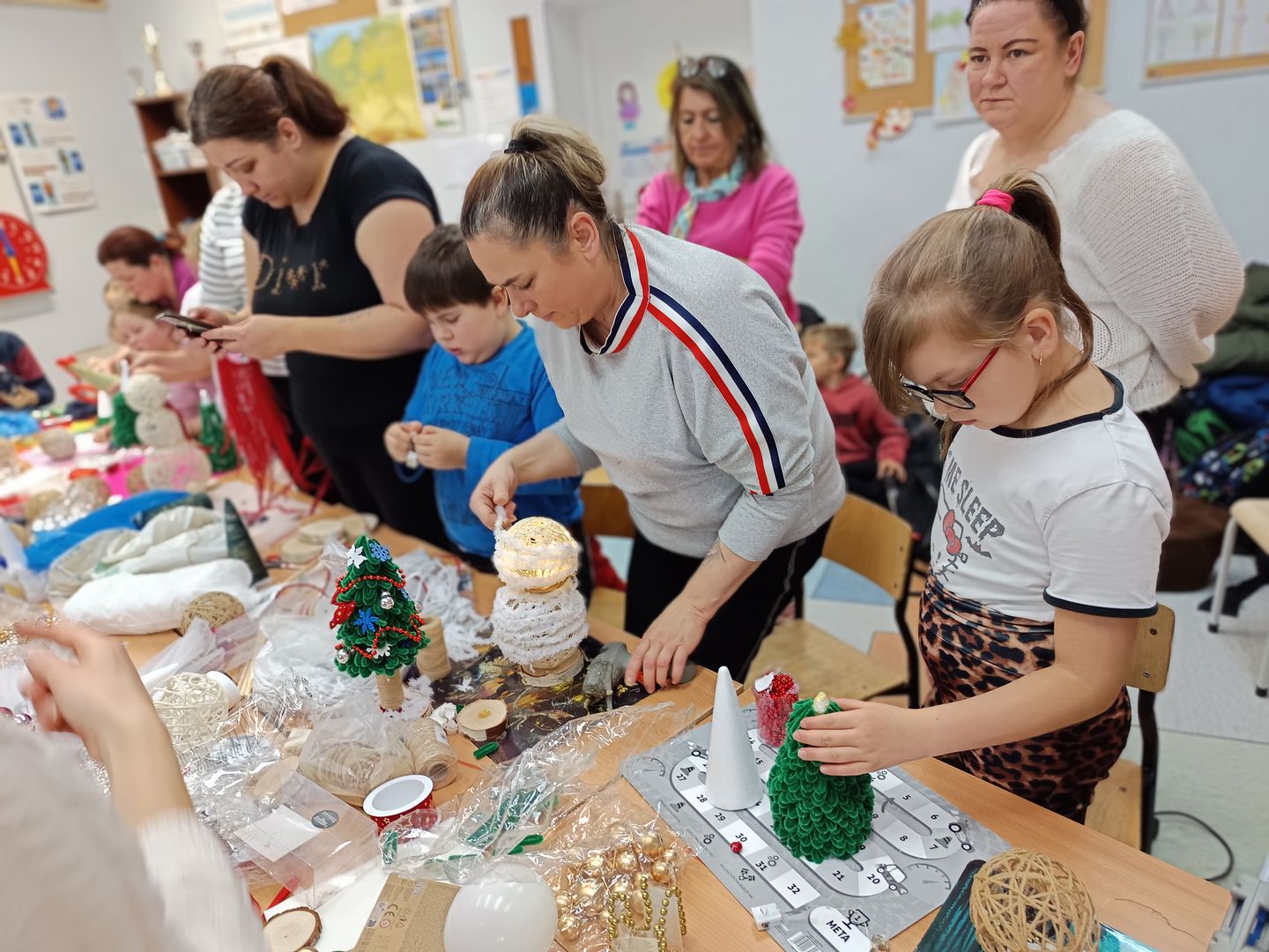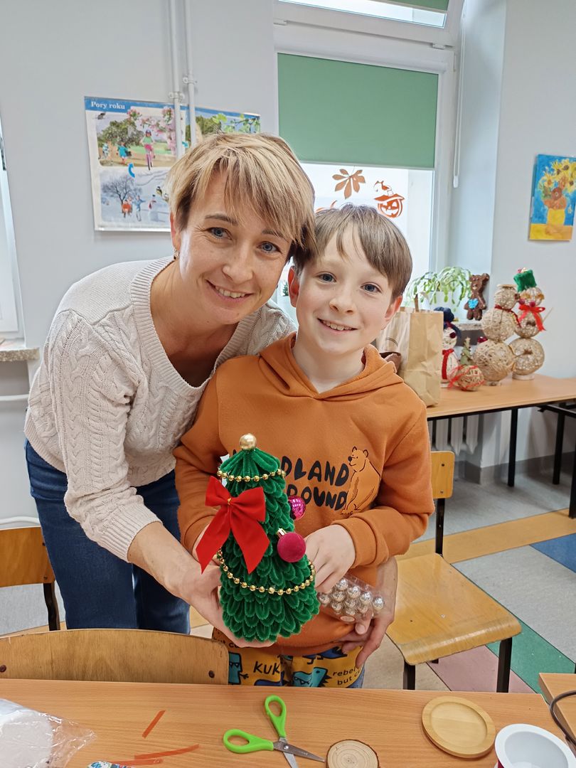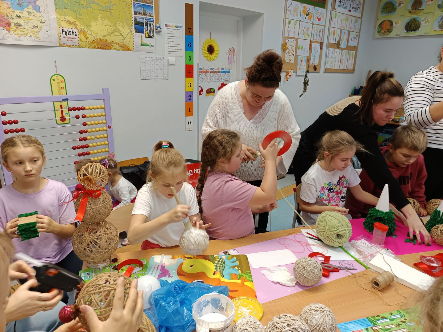 Na spotkanie przybyły mamy ponad połowy uczniów, które wspólnie z dziećmi tworzyły piękne i pomysłowe ozdoby bożonarodzeniowe. Atmosfera była naprawdę wspaniała – dzieci i mamy zaangażowane w pracę, a kreatywność nie miała granic.
