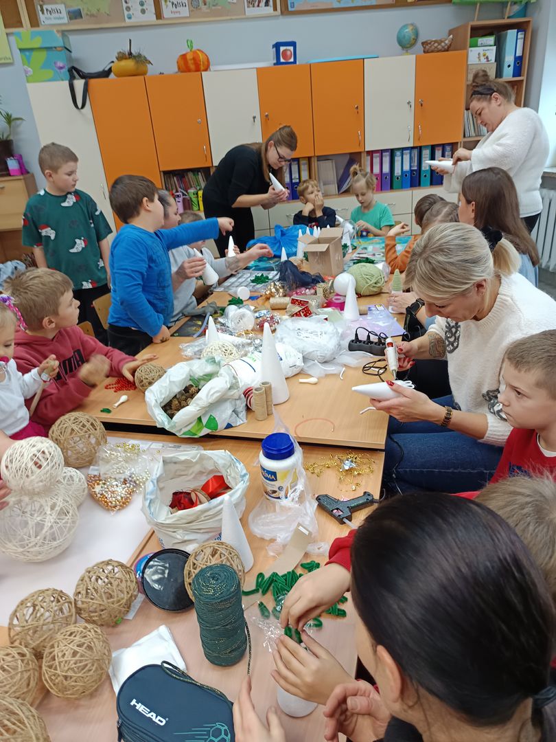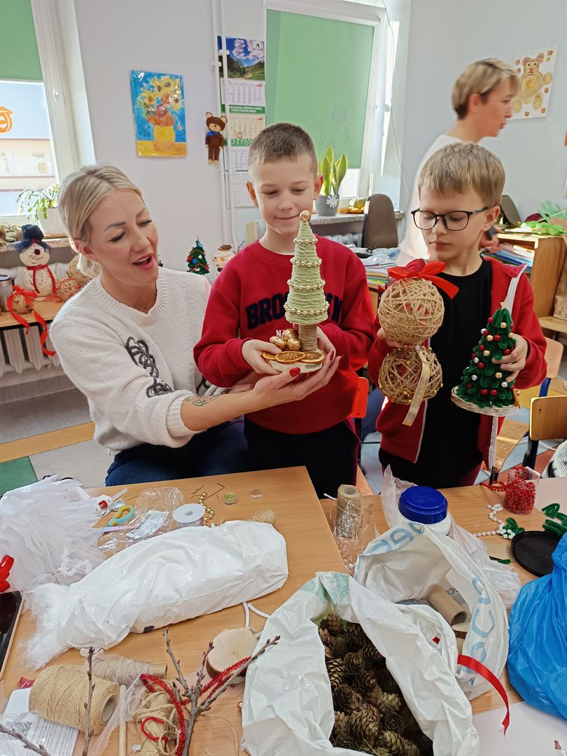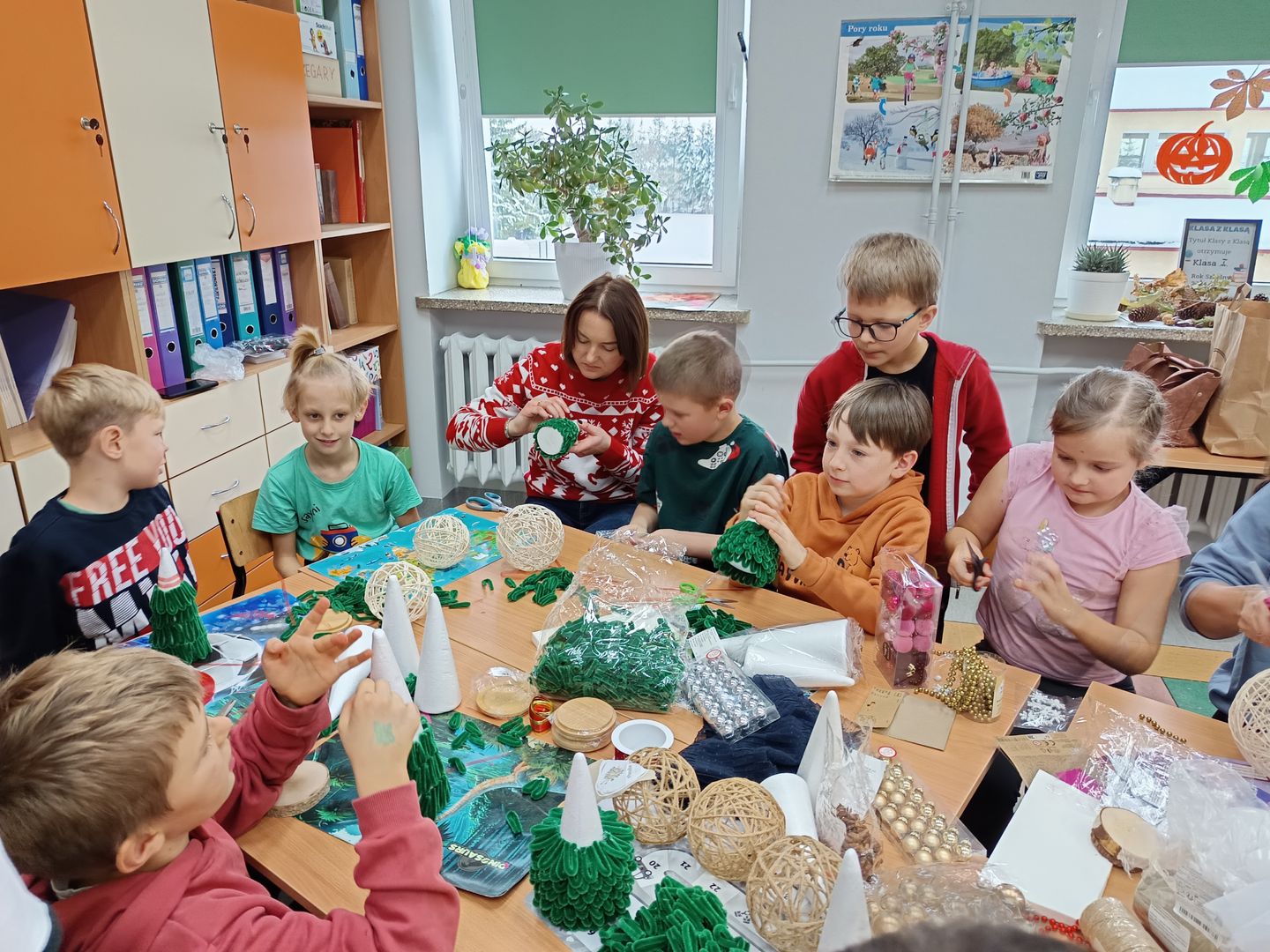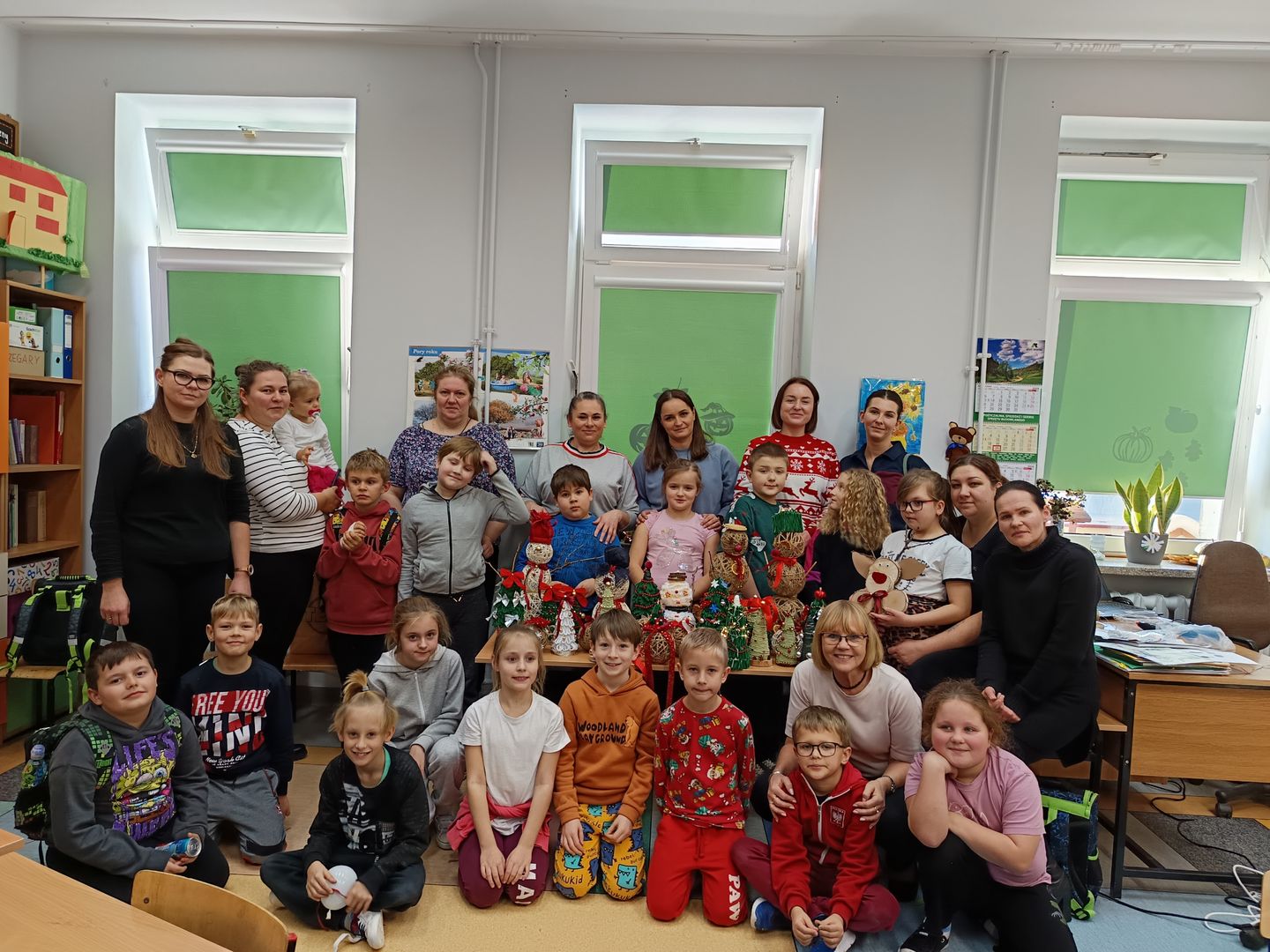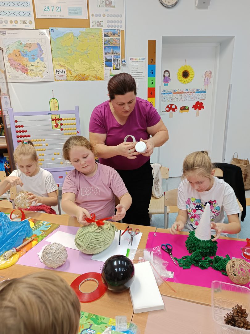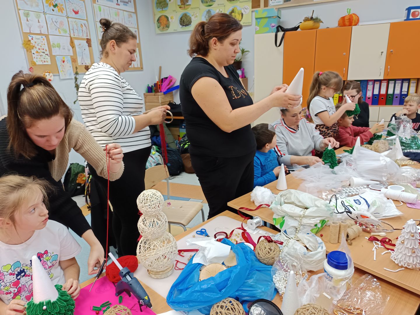 Na spotkanie przybyły mamy ponad połowy uczniów, które wspólnie z dziećmi tworzyły piękne i pomysłowe ozdoby bożonarodzeniowe. Atmosfera była naprawdę wspaniała – dzieci i mamy zaangażowane w pracę, a kreatywność nie miała granic.