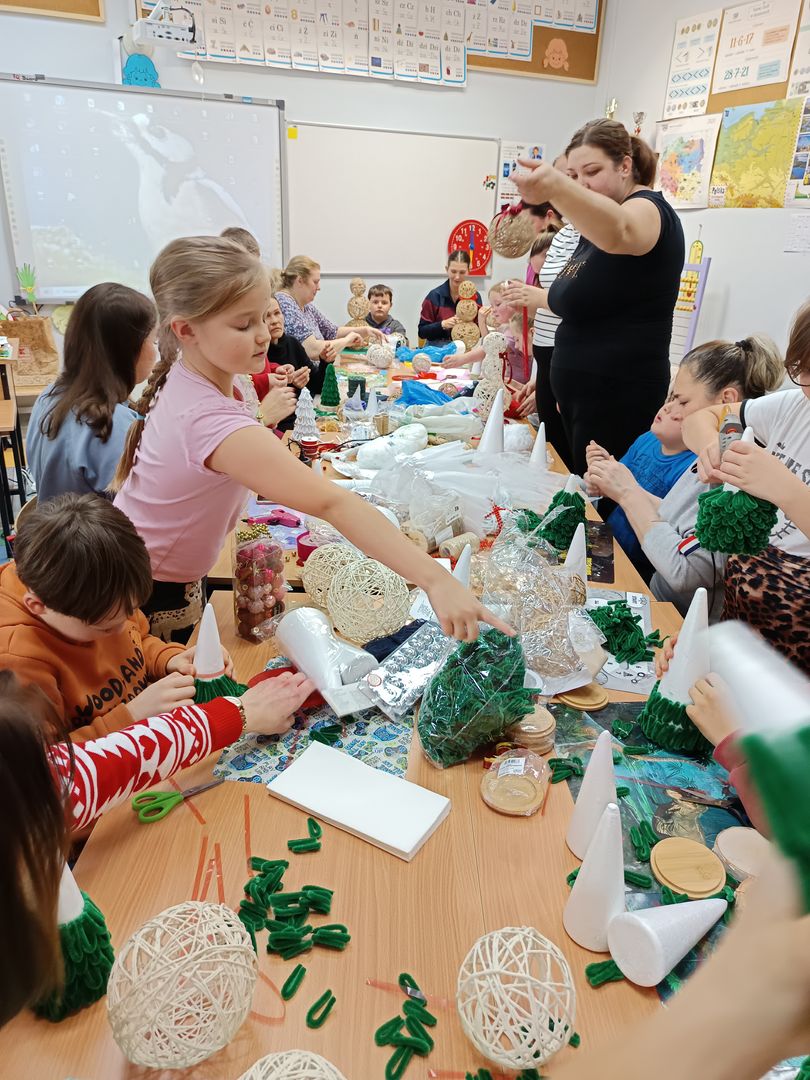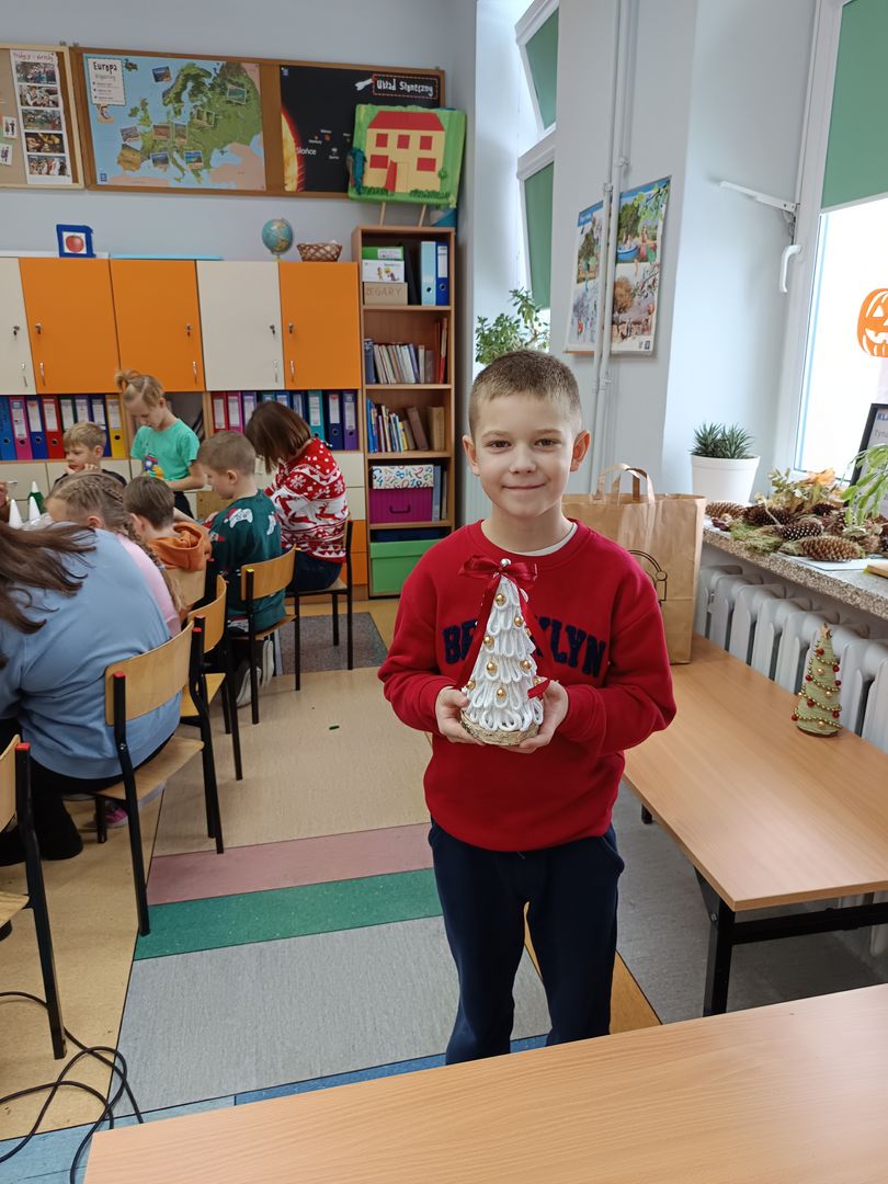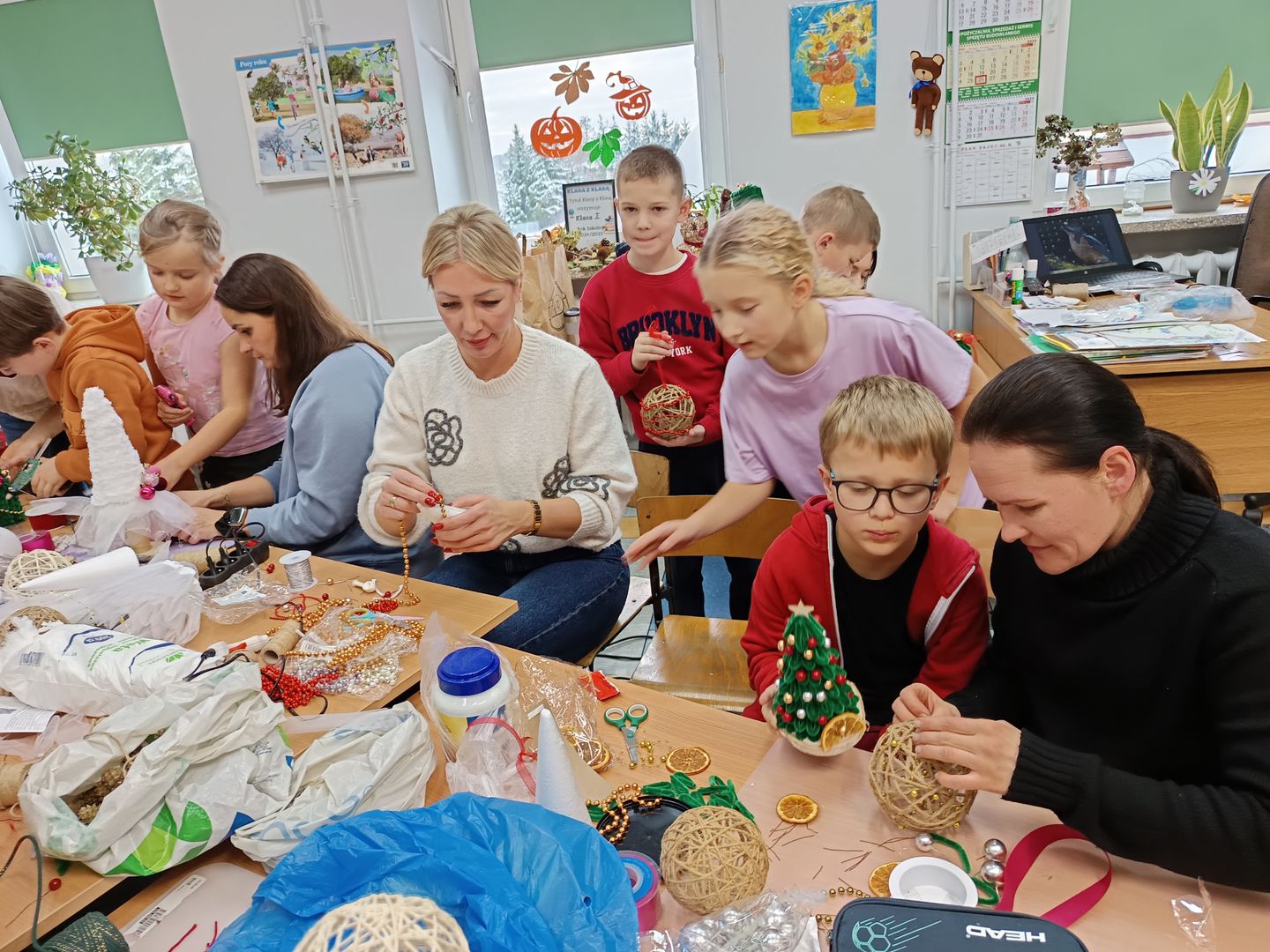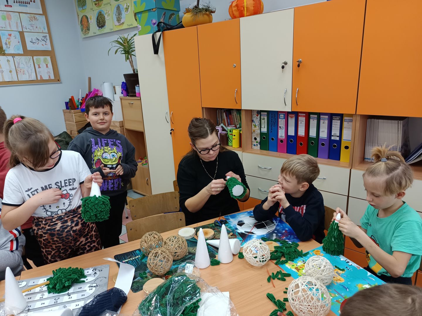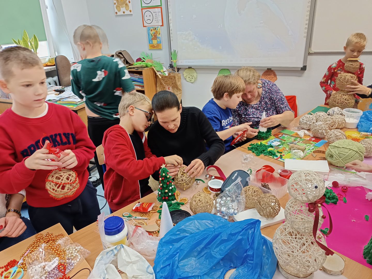 Na spotkanie przybyły mamy ponad połowy uczniów, które wspólnie z dziećmi tworzyły piękne i pomysłowe ozdoby bożonarodzeniowe. Atmosfera była naprawdę wspaniała – dzieci i mamy zaangażowane w pracę, a kreatywność nie miała granic.