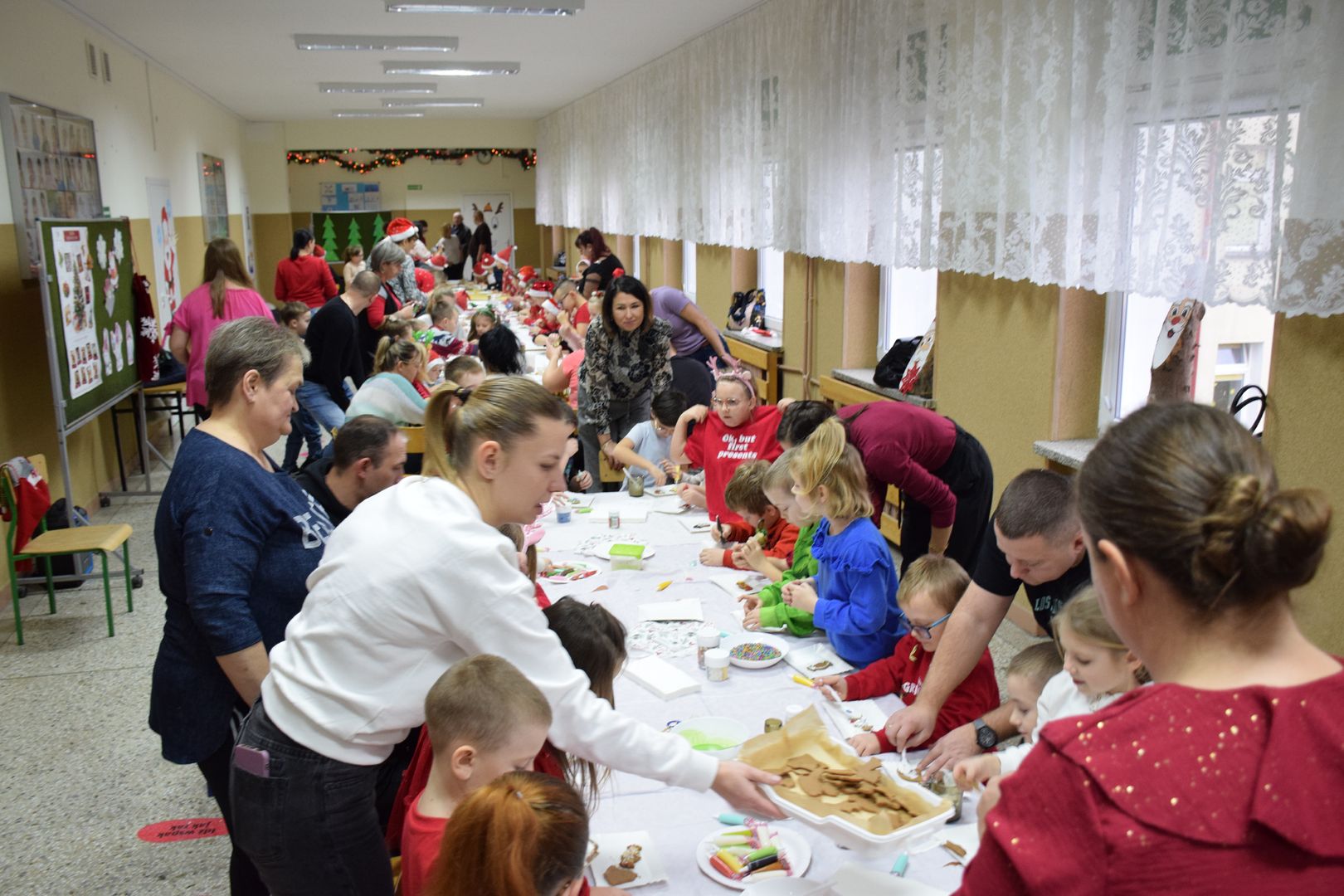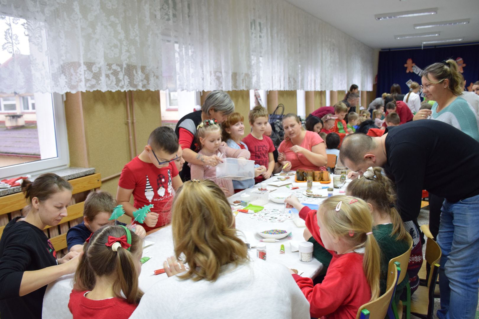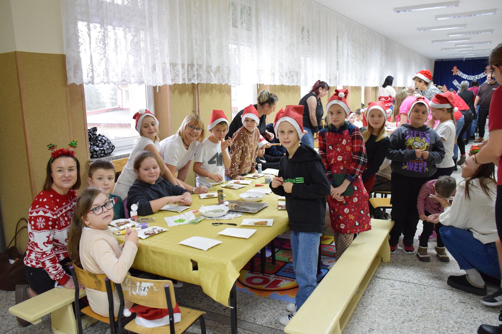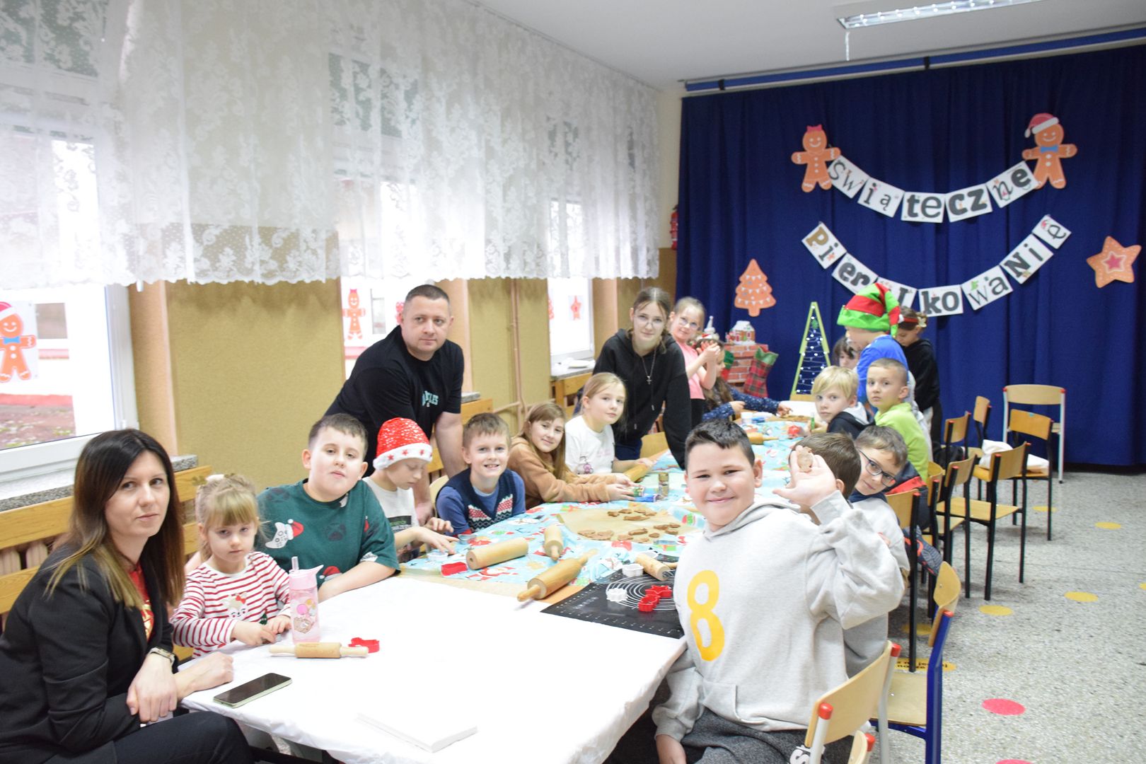 Cała impreza przebiegała w ciepłej, radosnej atmosferze. Uczestnikom towarzyszyła świąteczna muzyka, która jeszcze bardziej podkreślała klimat zbliżających się Świąt Bożego Narodzenia. Na twarzach dzieci i dorosłych nie brakowało uśmiechu, a wspólne tworzenie pierników stało się okazją do rozmów, współpracy i integracji całej społeczności szkolnej.