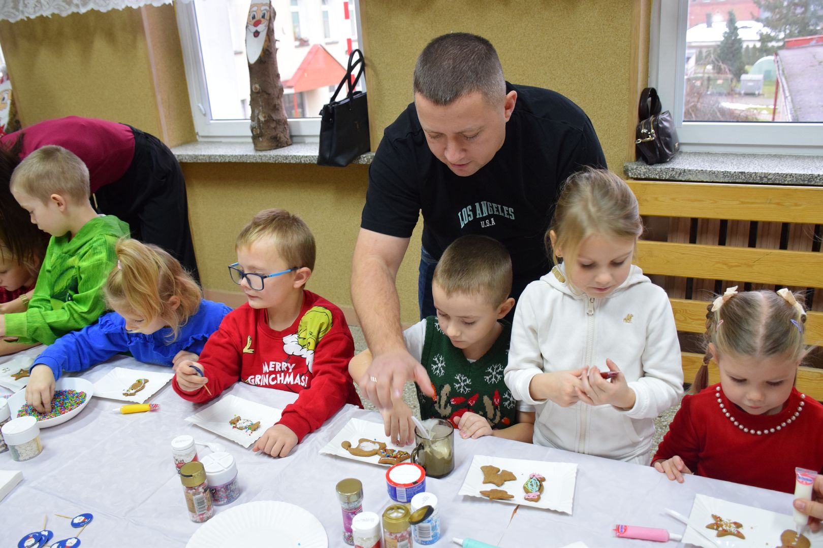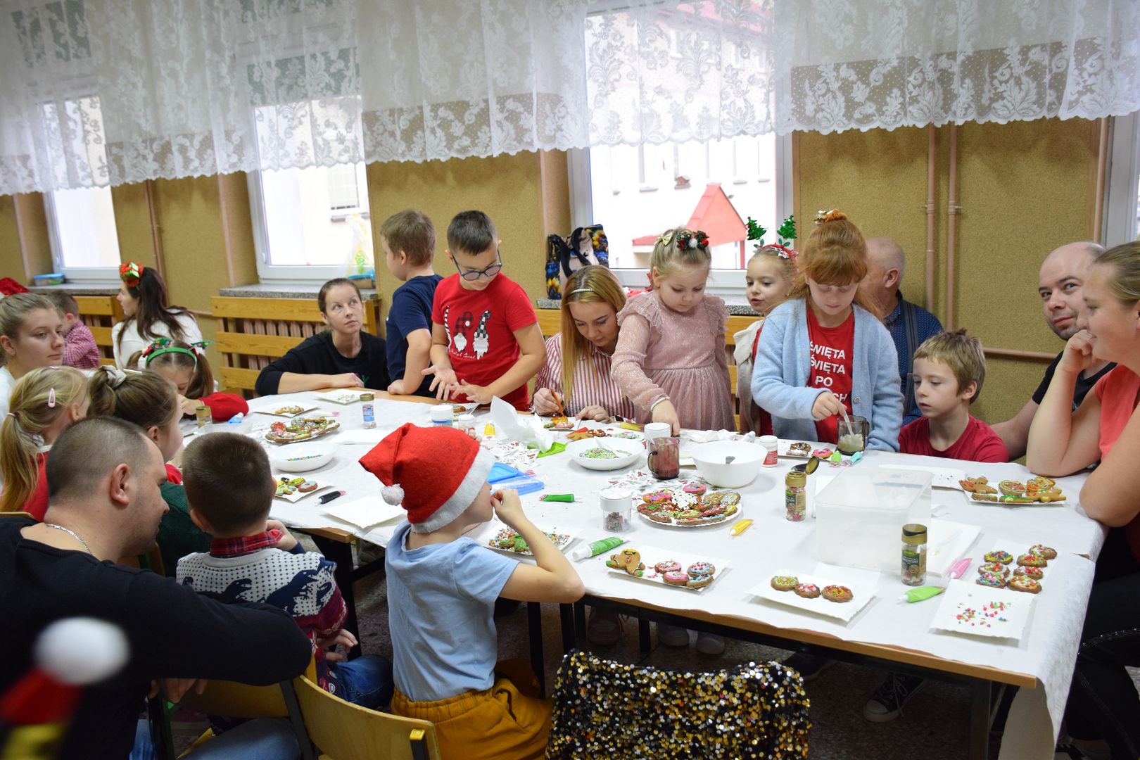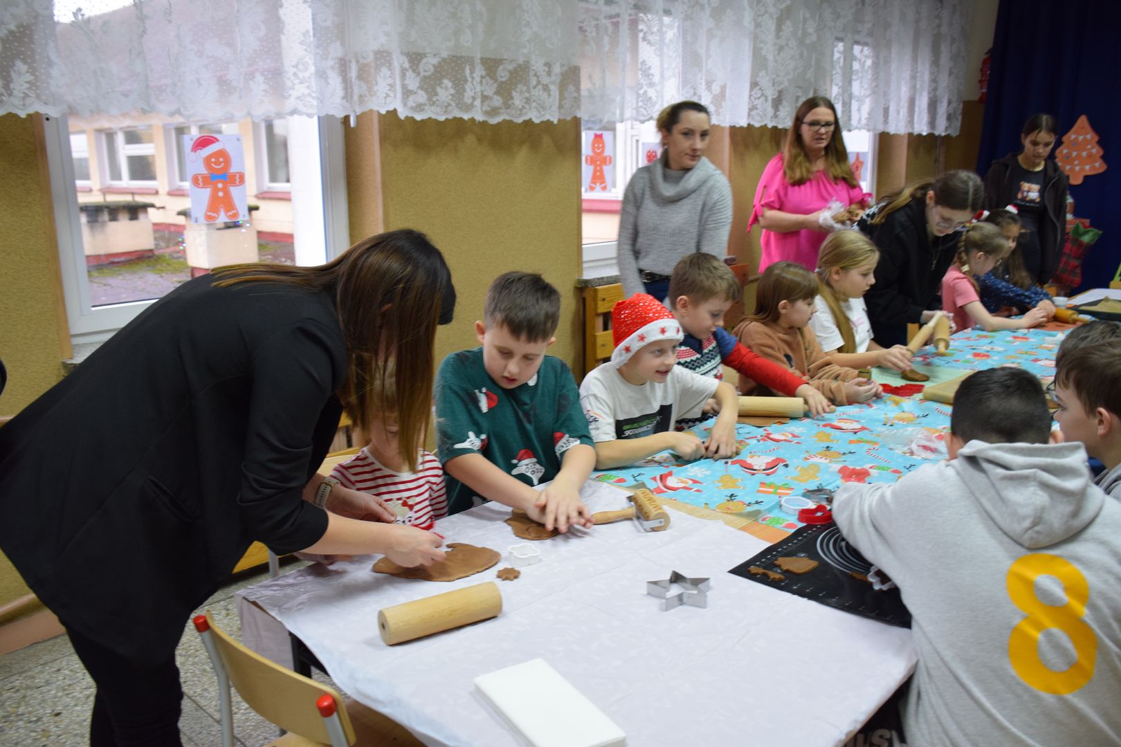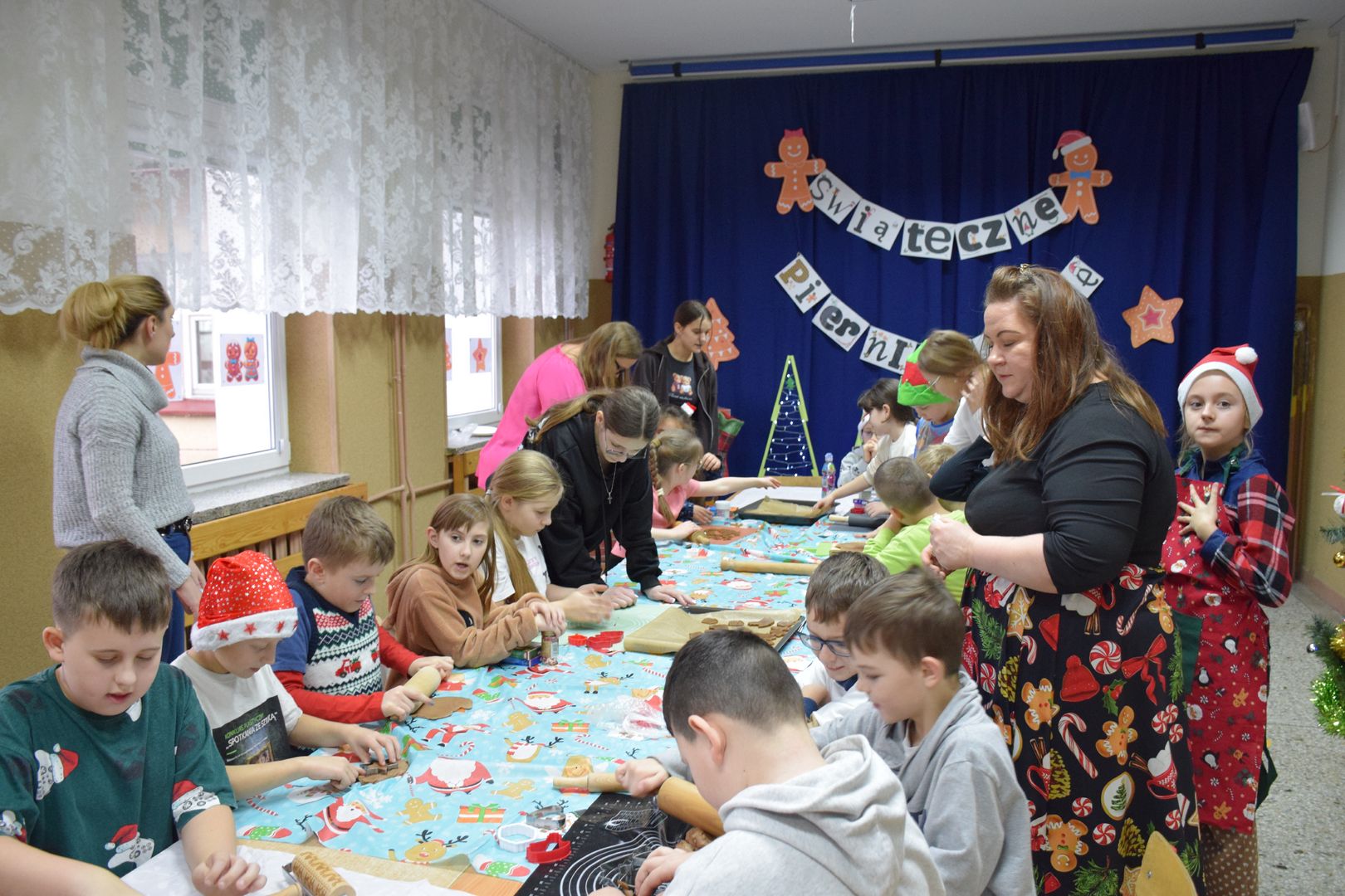 Cała impreza przebiegała w ciepłej, radosnej atmosferze. Uczestnikom towarzyszyła świąteczna muzyka, która jeszcze bardziej podkreślała klimat zbliżających się Świąt Bożego Narodzenia. Na twarzach dzieci i dorosłych nie brakowało uśmiechu, a wspólne tworzenie pierników stało się okazją do rozmów, współpracy i integracji całej społeczności szkolnej.
