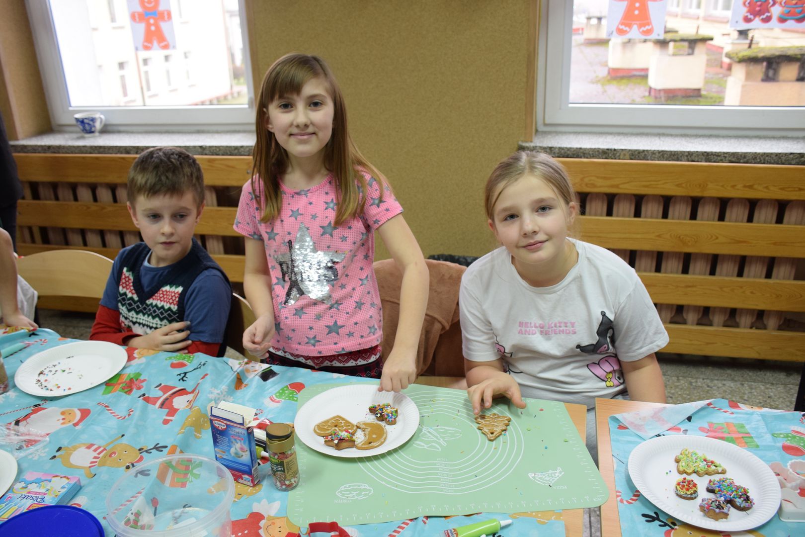Spotkanie rozpoczęła pani wicedyrektor Justyna Klimaszewska, która przywitała wszystkich uczestników i zaprosiła do wspólnej zabawy. Uczniowie wyposażeni w wałki, foremki i sporą dawkę entuzjazmu, samodzielnie wałkowali ciasto a następnie formowali je w różnorodne kształty. Po wypieczeniu nadszedł czas dekorowania – kolorowe lukry, posypki i polewy pozwoliły uczestnikom stworzyć prawdziwie artystyczne kompozycje.