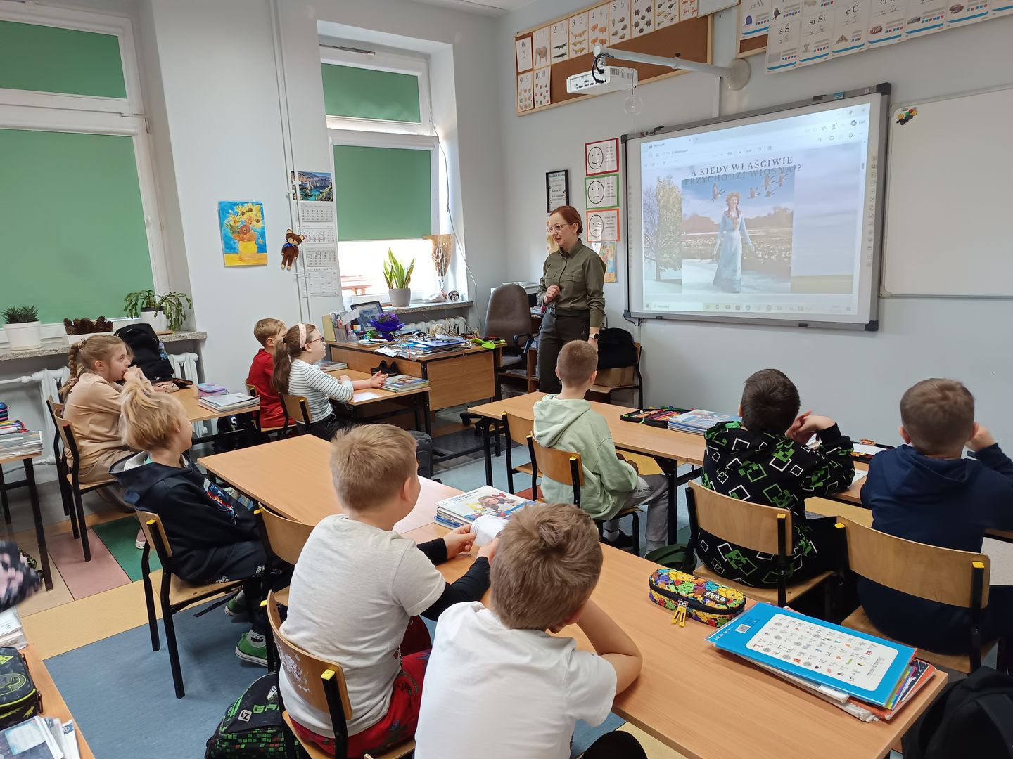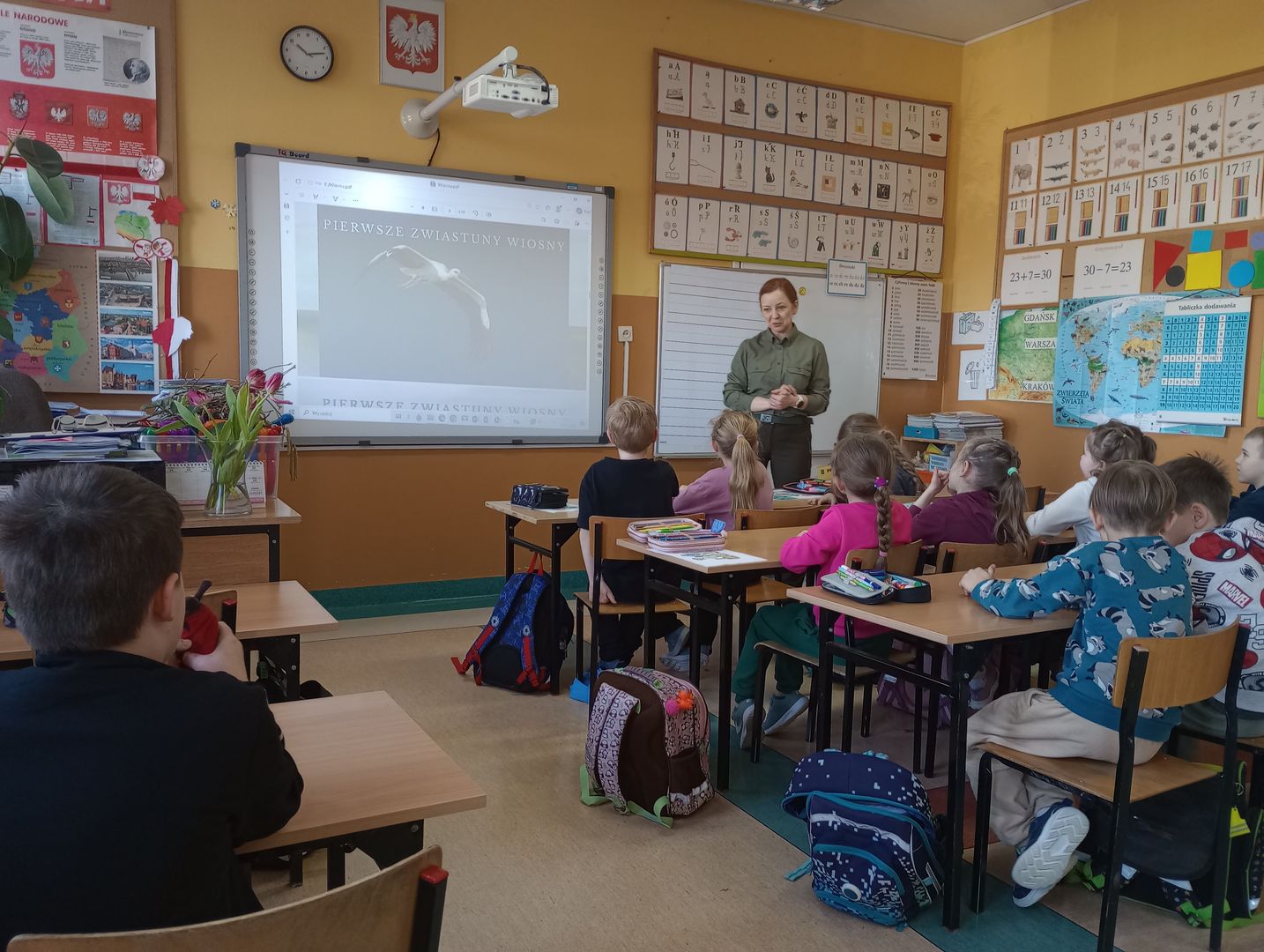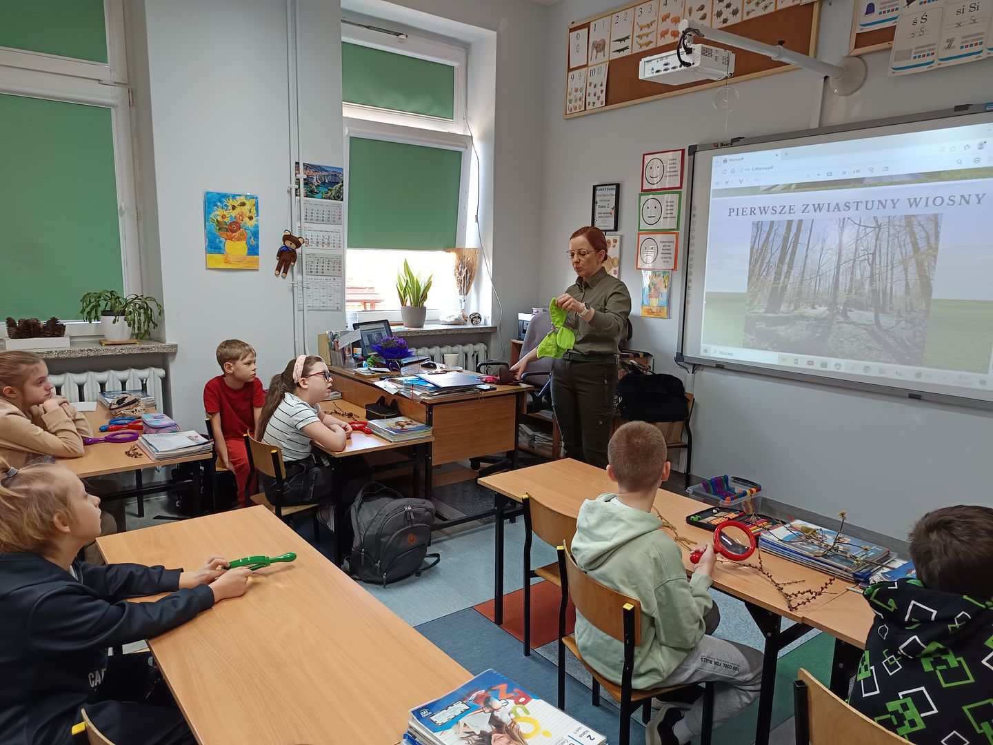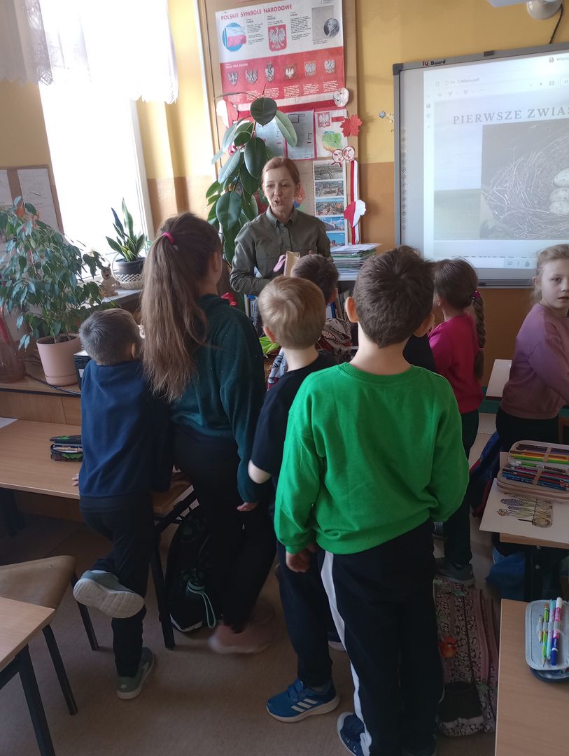 Uczniowie obejrzeli również prezentację ukazującą pierwsze oznaki wiosny w świecie roślin i ptaków, wzbogaconą o autentyczne odgłosy przyrody. Dowiedzieli się, jakie owady i zwierzęta budzą się do życia wraz z nadejściem tej wyjątkowej pory roku.